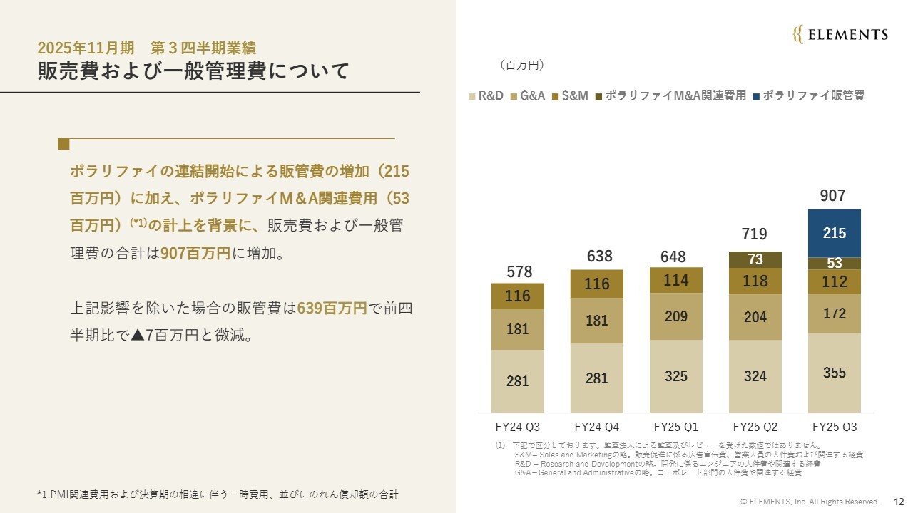 そのため、販管費のコントロールについては、ポラリファイ社の一時的な費用やM&Aに関連する一時的な費用を除けば、十分にコントロールできていると考えています。