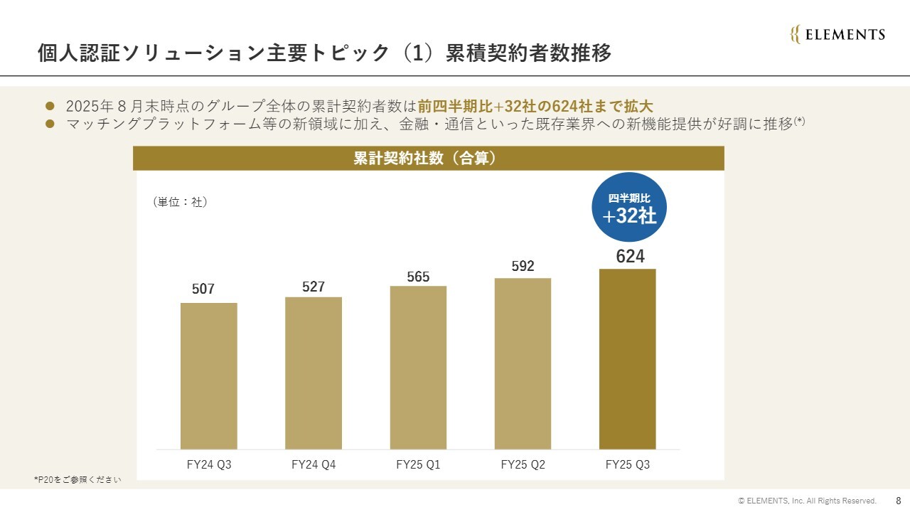 ELEMENTS、個人認証需要拡大とポラリファイ社連結効果でQ3売上高は前年比+59%で過去最高 通期計画達成に向け堅調に推移