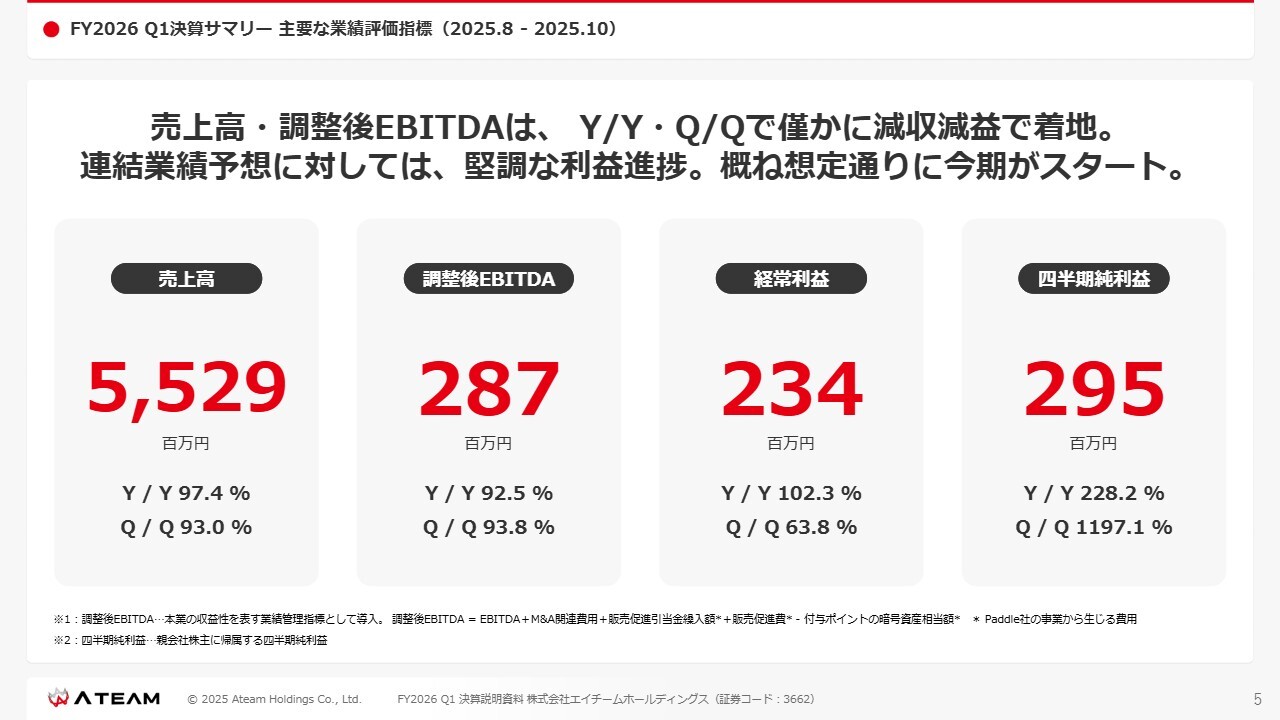 FY2026 Q1決算サマリー 主要な業績評価指標(2025.8-2025.10)