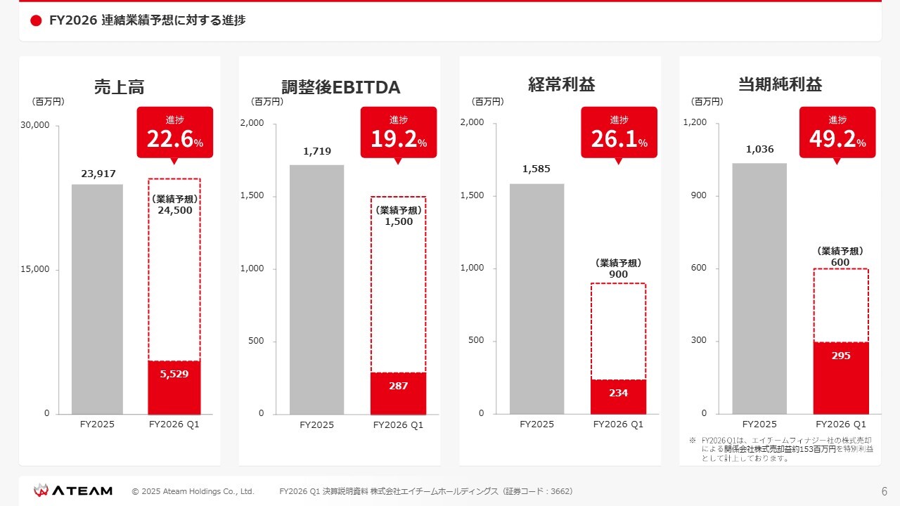 林高生氏:代表取締役社長の林です。エイチームホールディングスのFY2026第1四半期決算説明にご参加いただき、誠にありがとうございます。