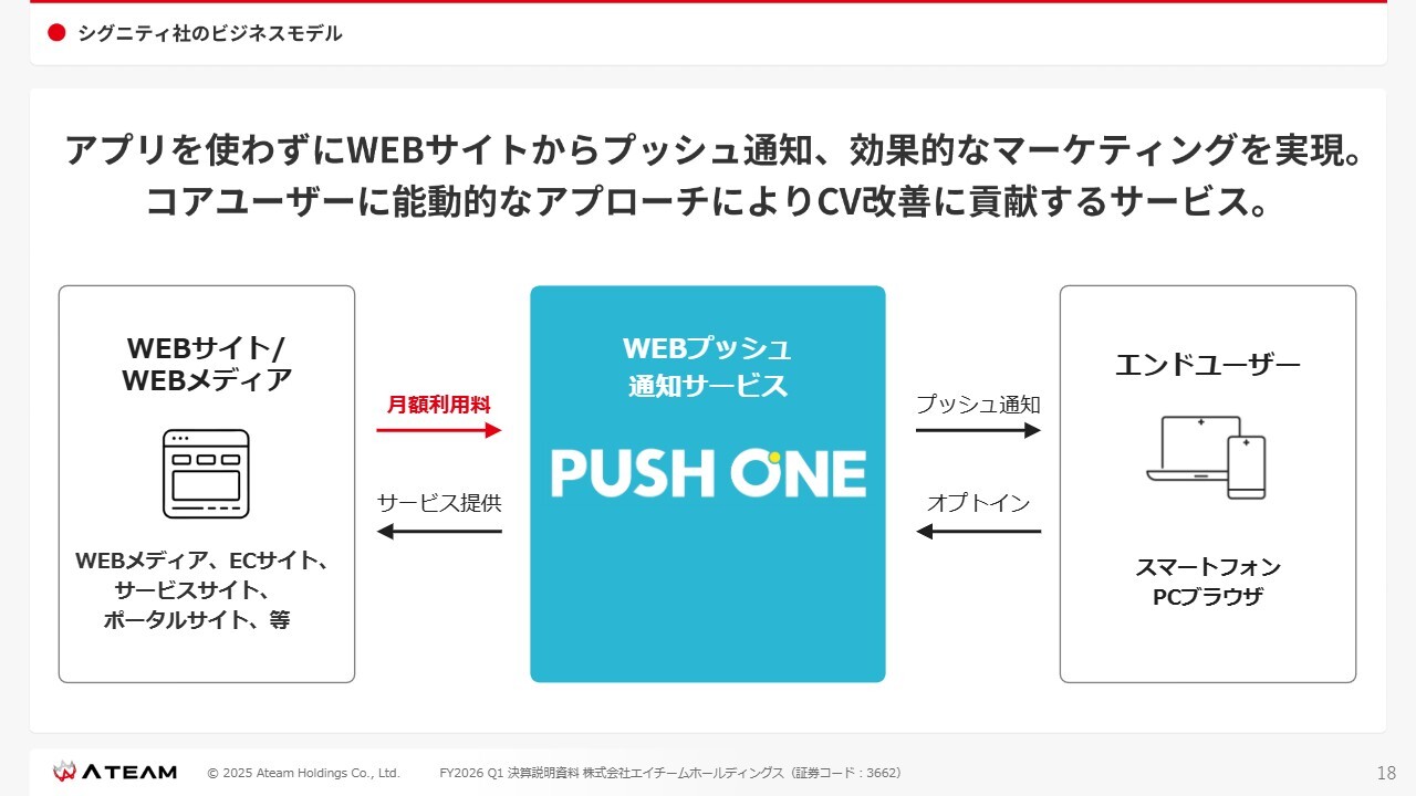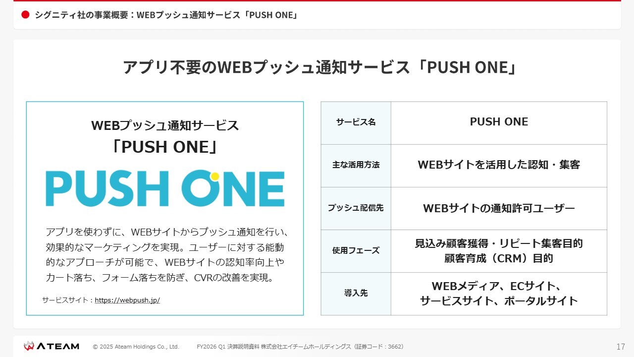 シグニティ社の事業概要:WEBプッシュ通知サービス「PUSH ONE」