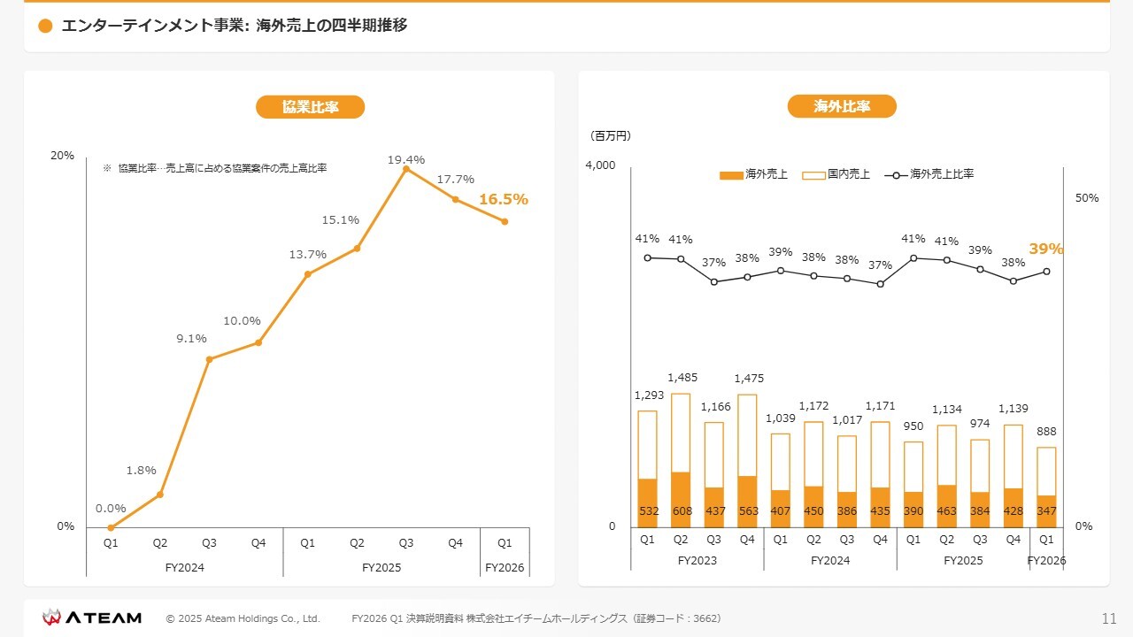 エンターテインメント事業:協業比率及び海外売上比率の四半期推移