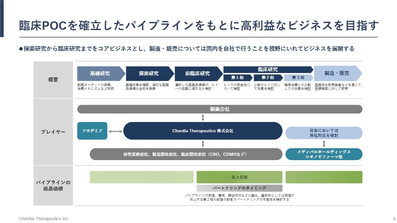 臨床POCを確立したパイプラインをもとに高利益なビジネスを目指す