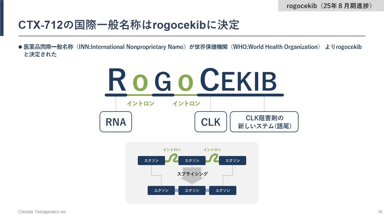 1点目は、「CTX-712」の国際一般名称として「rogocekib」が使用可能になった点です。2点目は、FDAからオーファンドラッグ指定を受けたことです。3点目は、米国の試験で36症例を積み上げ、日米合計で96症例への投与を行った点です。