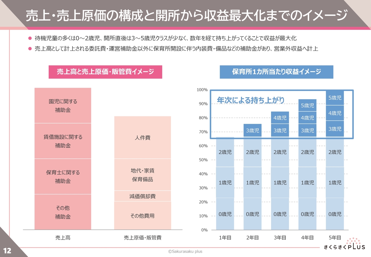 このように、保育所は開所から数年を経て、園児構成の変化とともに収益が最大化されるモデルとなっています。