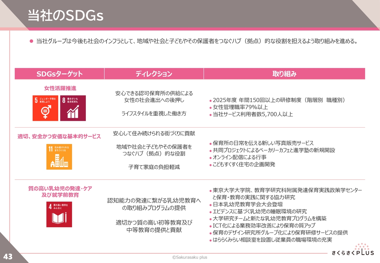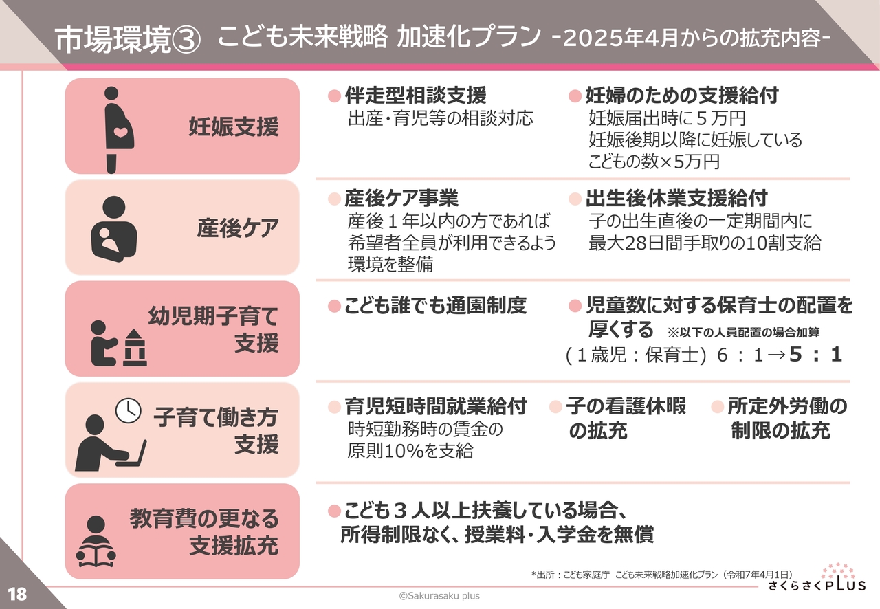 さくらさくプラス、 少子化対策を追い風に保育と周辺サービスを拡充 ICT・不動産・教育研修の連携で子育て支援を深化