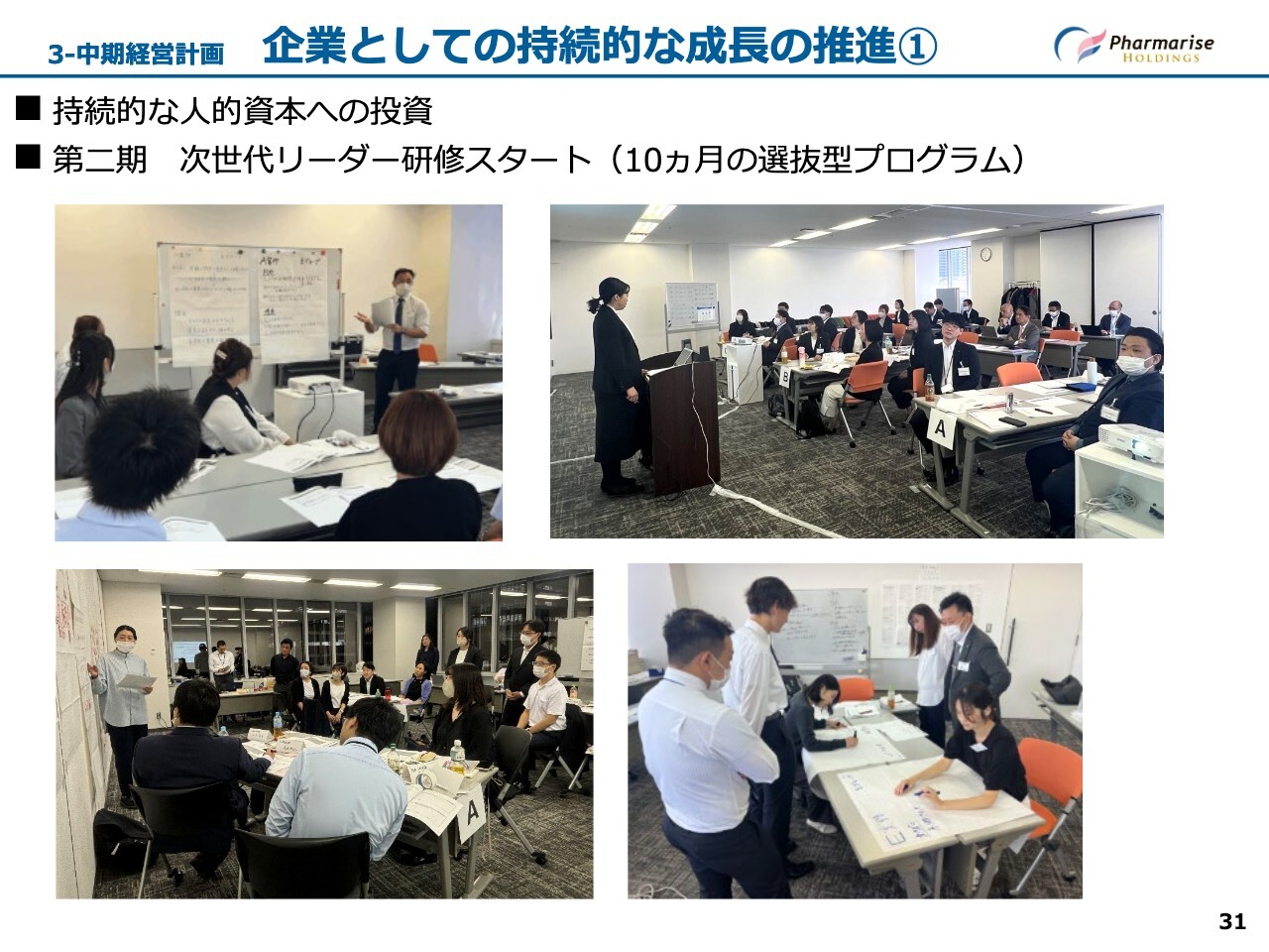 グループの発展には、リーダー・マネジメント層の育成と活躍が必須であることから、引き続き人的資本投資に力を入れていきます。