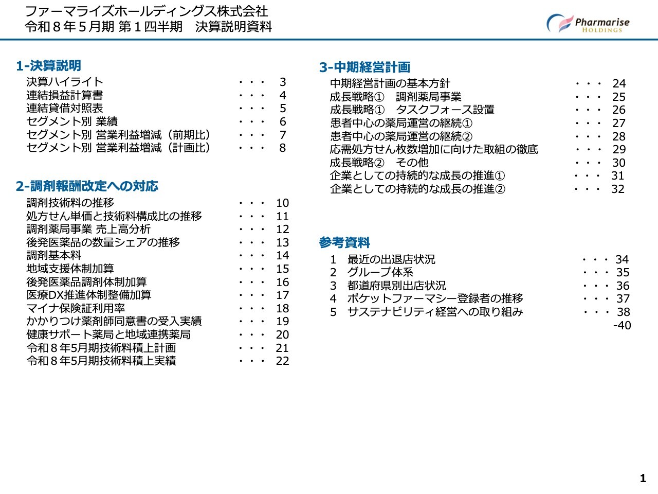 ファーマライズホールディングス株式会社 令和8年5月期 第1四半期 決算説明資料