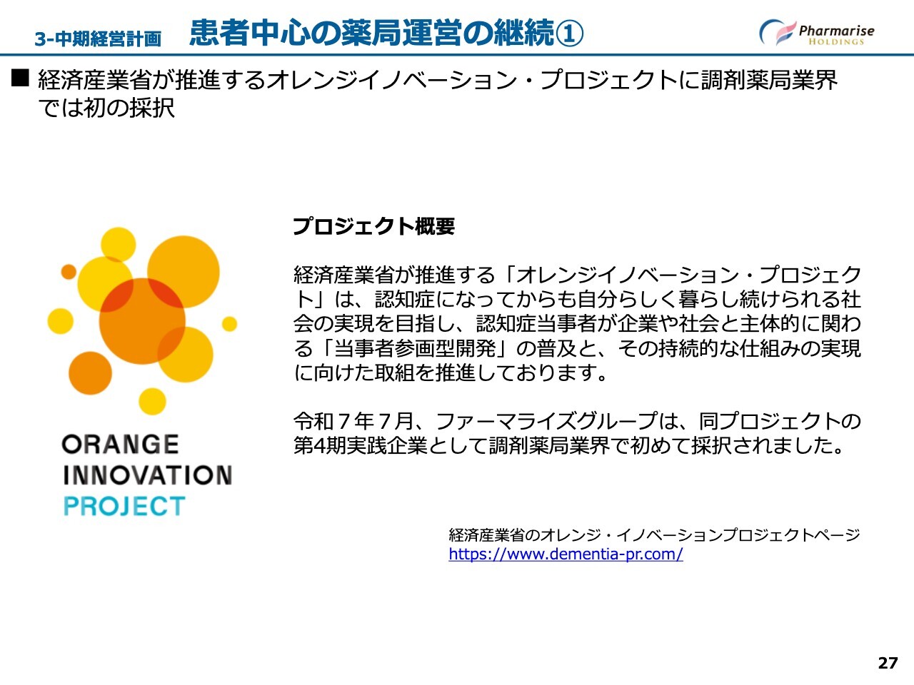 令和7年7月、当社グループは経済産業省が推進する「オレンジイノベーション・プロジェクト」の第4期実践企業として、調剤薬局業界で初めて採択されました。