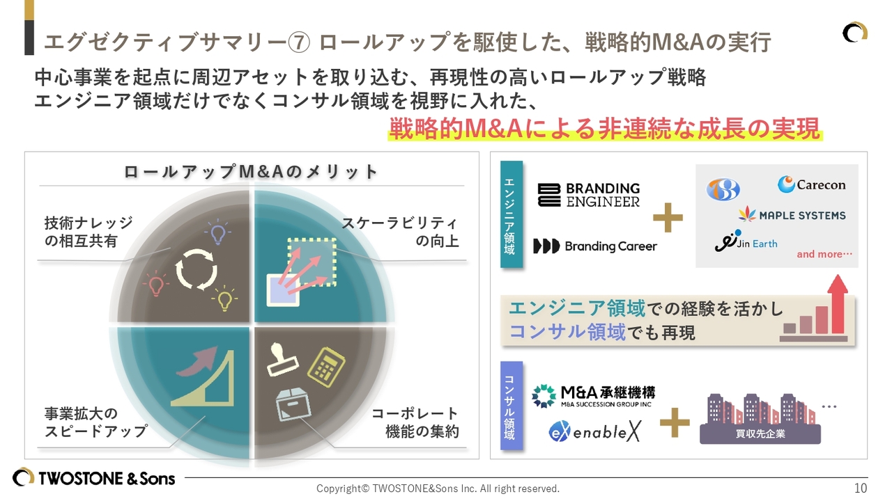エグゼクティブサマリー⑦ ロールアップを駆使した、戦略的M&Aの実行