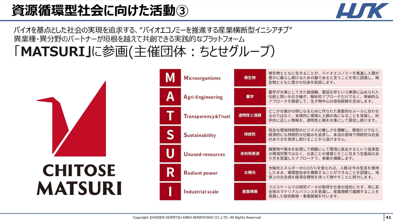 また、藻類をはじめとするバイオエコノミーを推進するちとせグループ主催の「MATSURI」に、この度参画することとなりました。