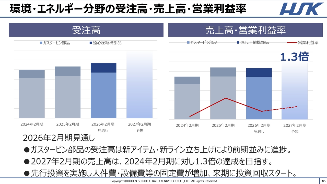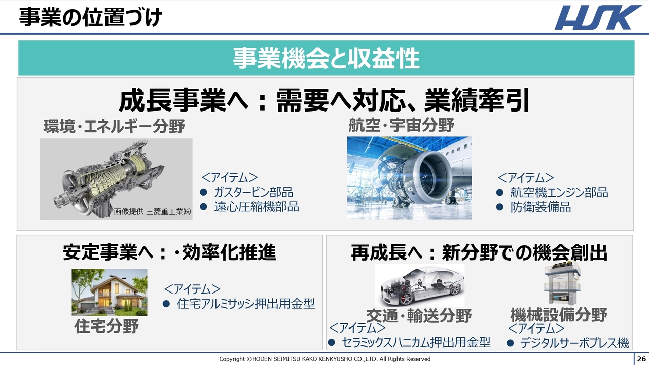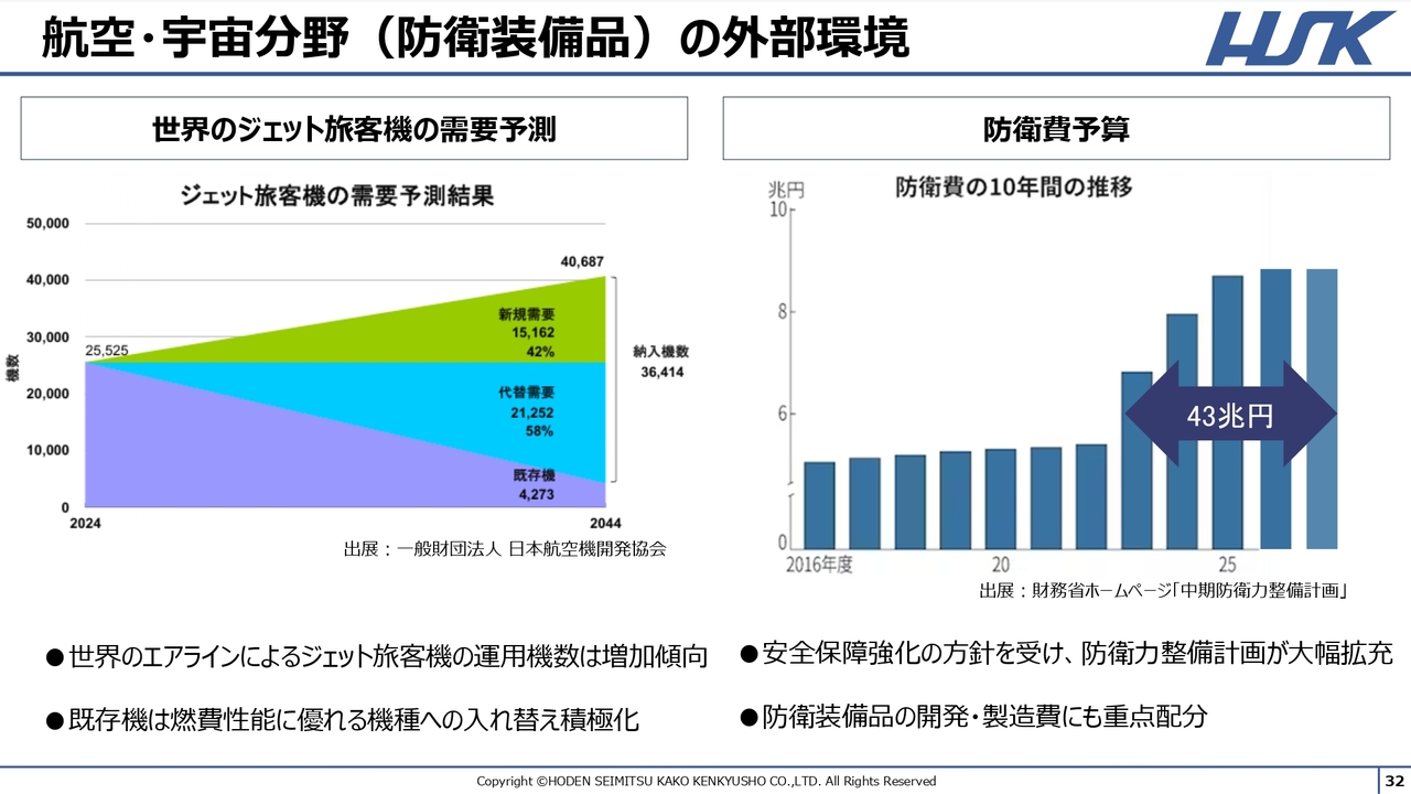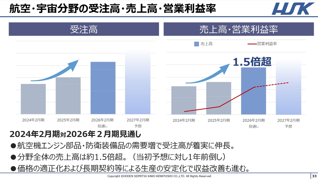防衛装備品については業績を大きく牽引し、航空機エンジン部品も着実に伸長すると見ています。この分野全体の売上高は、想定より1年前倒しで達成できると予想されます。