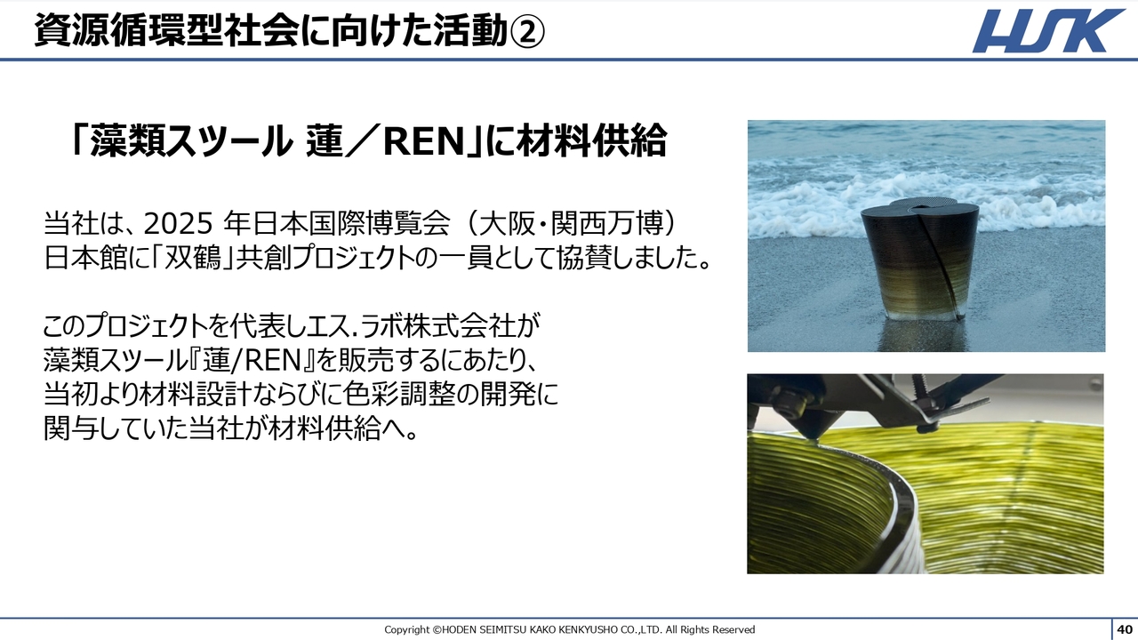 また、このプロジェクトを代表してエス.ラボ株式会社が3Dプリンターで製造するスツールのブランド「蓮/REN」を販売するにあたり、当社は材料供給を行っています。