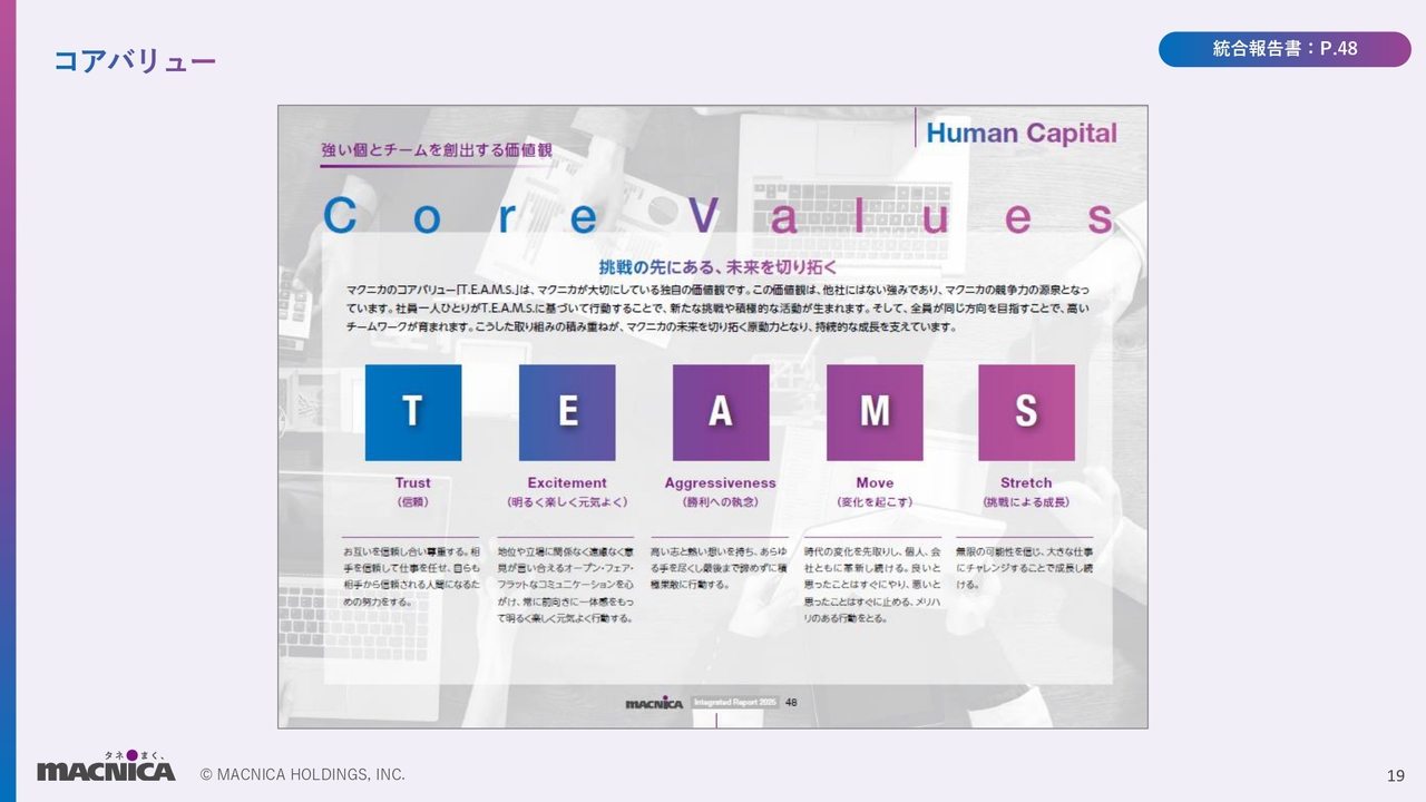 原:まず、マクニカには「T.E.A.M.S.」というコアバリューがあります。これは「Trust」を前提としたエンパワーメントやベンチャースピリット、変革志向、チームで活動することを象徴する価値観で、グループ全体で共有されている強みの源泉です。