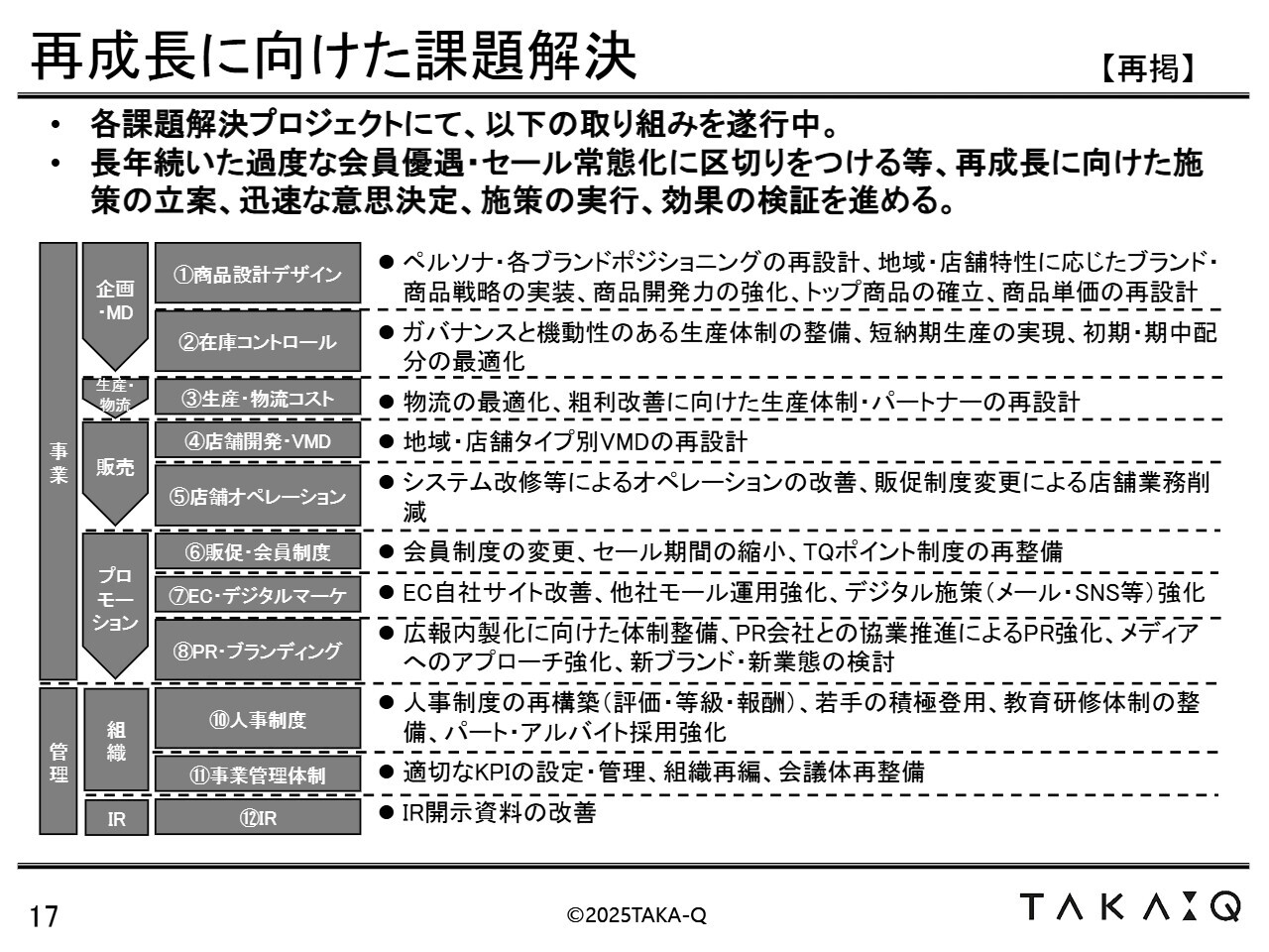 後方の仕組みや接客体制にも変化を加えています。詳細については、スライドをご覧いただければおわかりになると思いますが、このようにさまざまな部分を変革して動いています。