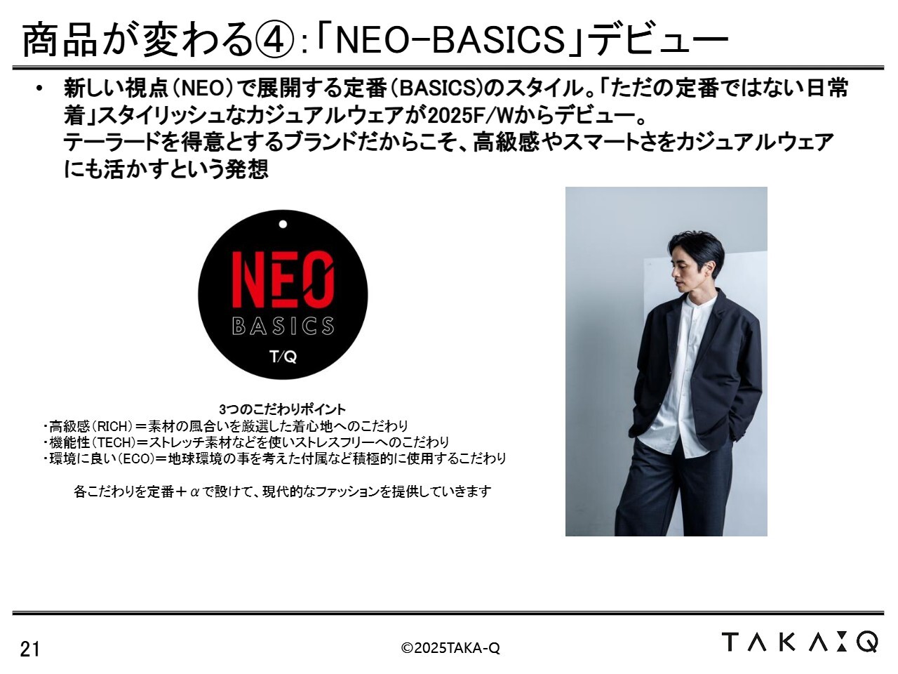「NEO-BASICS」というカテゴリを1つデビューさせる動きをしています。私は、ベーシックというものが必要だと考えています。ただし、ベーシックが単に普通のものではいけません。