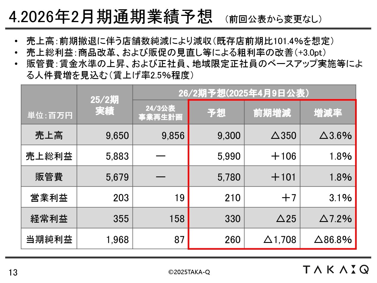 4.2026年2月期通期業績予想 (前回公表から変更なし)