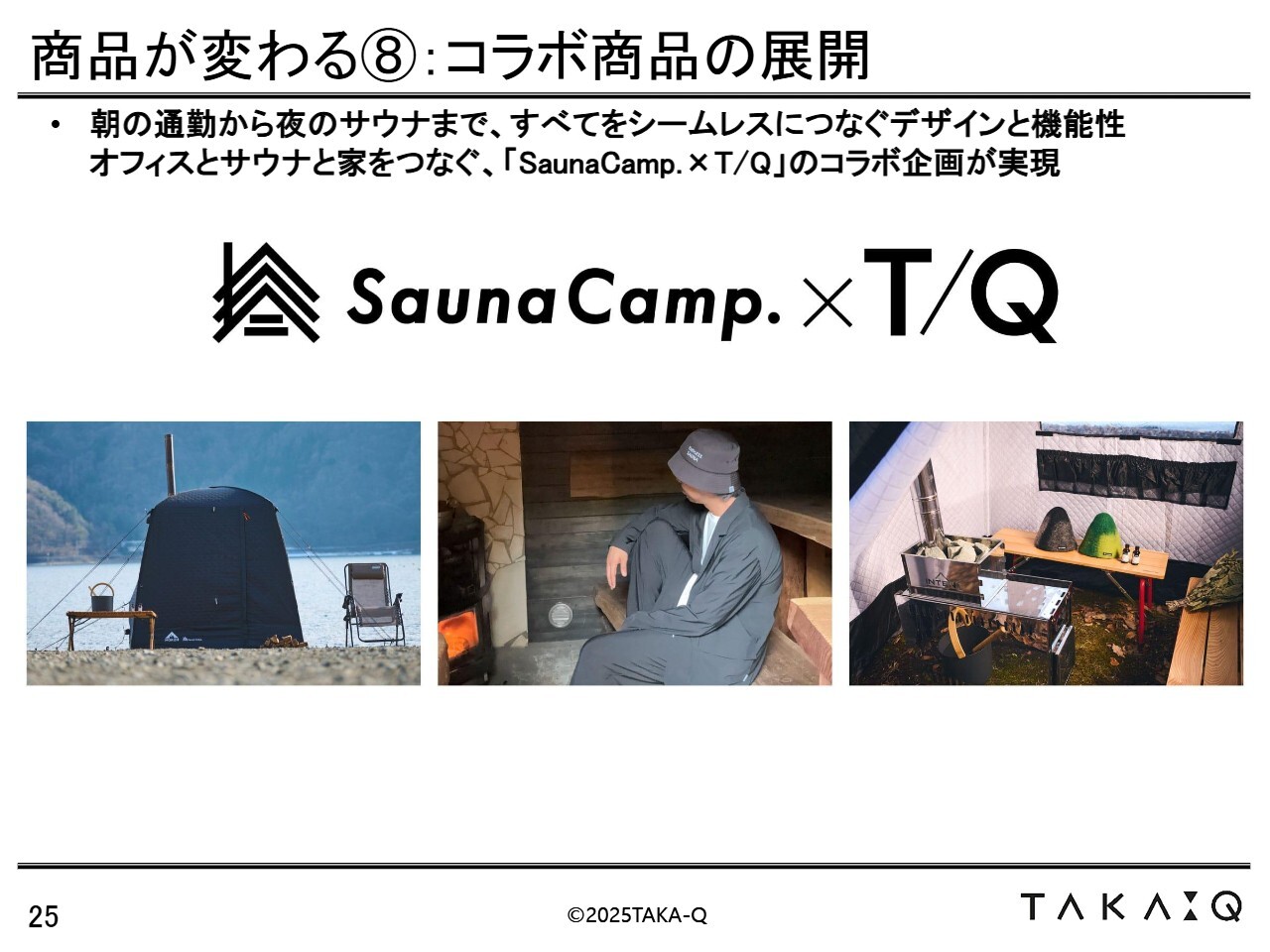 今後もさまざまなアイデアを検討している中で、サウナキャンプという会社とのコラボ商品を展開しました。「T/Q」とのコラボレーションです。