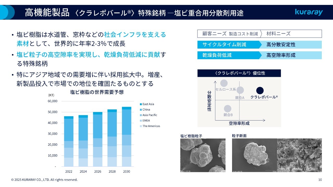 高機能製品〈クラレポバール〉特殊銘柄一塩ビ重合用分散剤用途