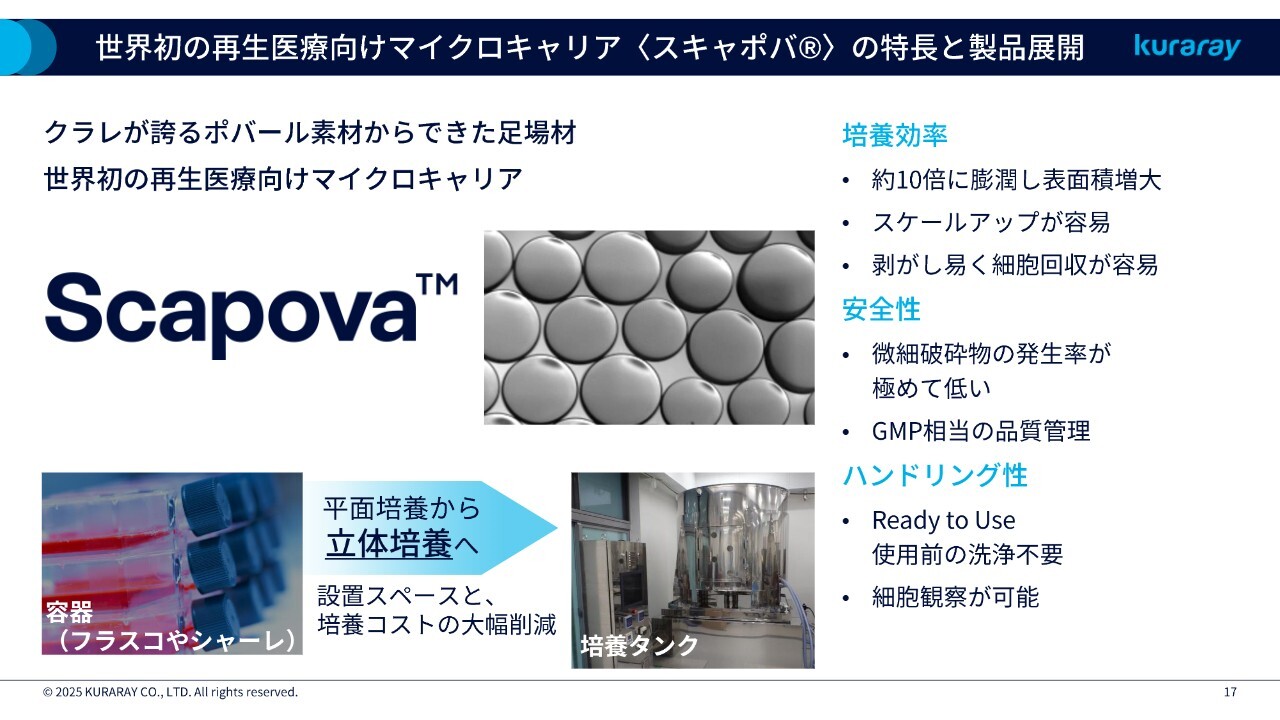 また、先ほどご説明したPVAマイクロキャリア以外にも、研究開発やM&Aを通じて新しいイノベーションの創出に取り組んでいます。