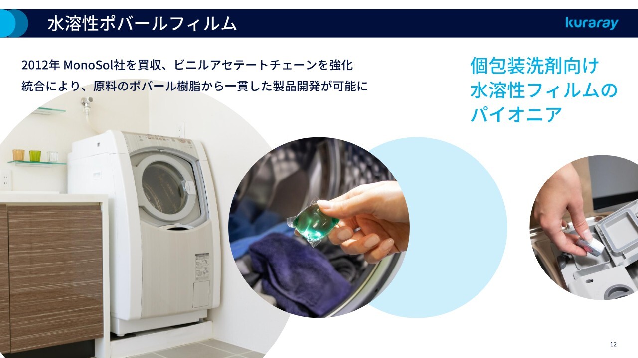 当社は2000年代から海外事業においてM&Aを積極的に進めており、水溶性ポバールフィルムも2012年にアメリカのMonoSol社を買収することで当社のポートフォリオに取り込んだ事業です。もともとは当社のお客さまでした。