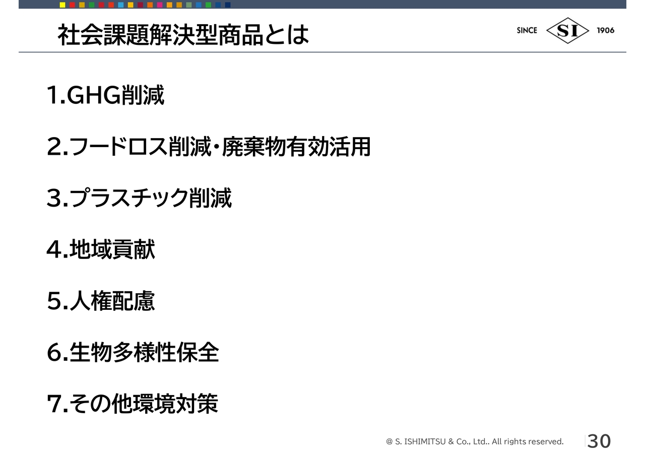 社会課題解決型商品の拡大については後ほどご説明します。特に当社は、GHG排出削減を踏まえた商品力の強化を進めたいと考えています。