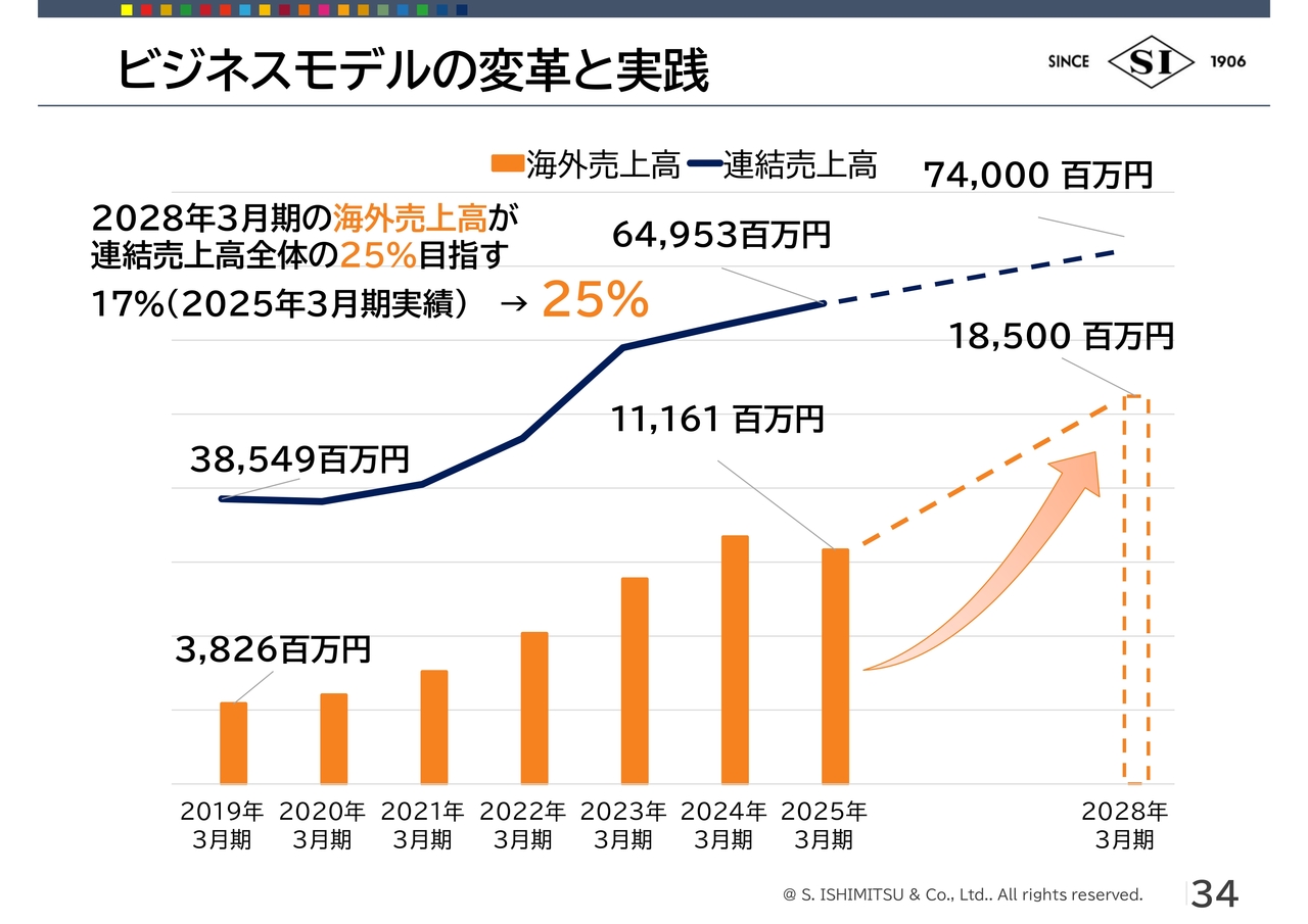 荒川:2025年3月期の海外売上高は約111億円でしたが、これを185億円程度にすることで全体の25パーセントになります。