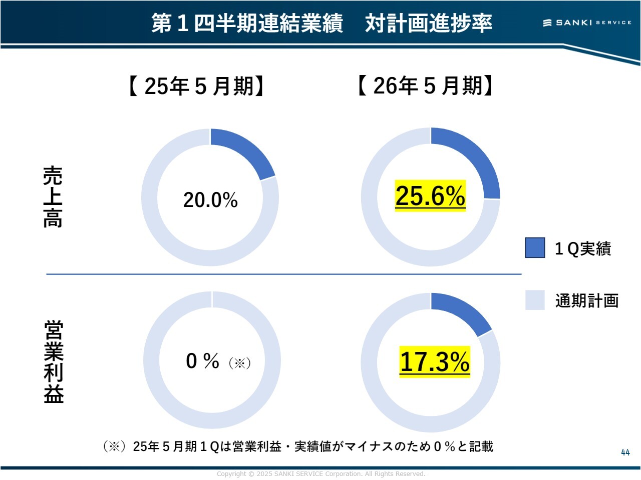 2026年5月期は、売上高・営業利益ともに前年同期よりも進捗度合いが大きいことがわかります。しかし、今回の中期経営計画で掲げた施策はまだ着手したばかりであり、利益率向上の余地が大きく残されていると考えています。