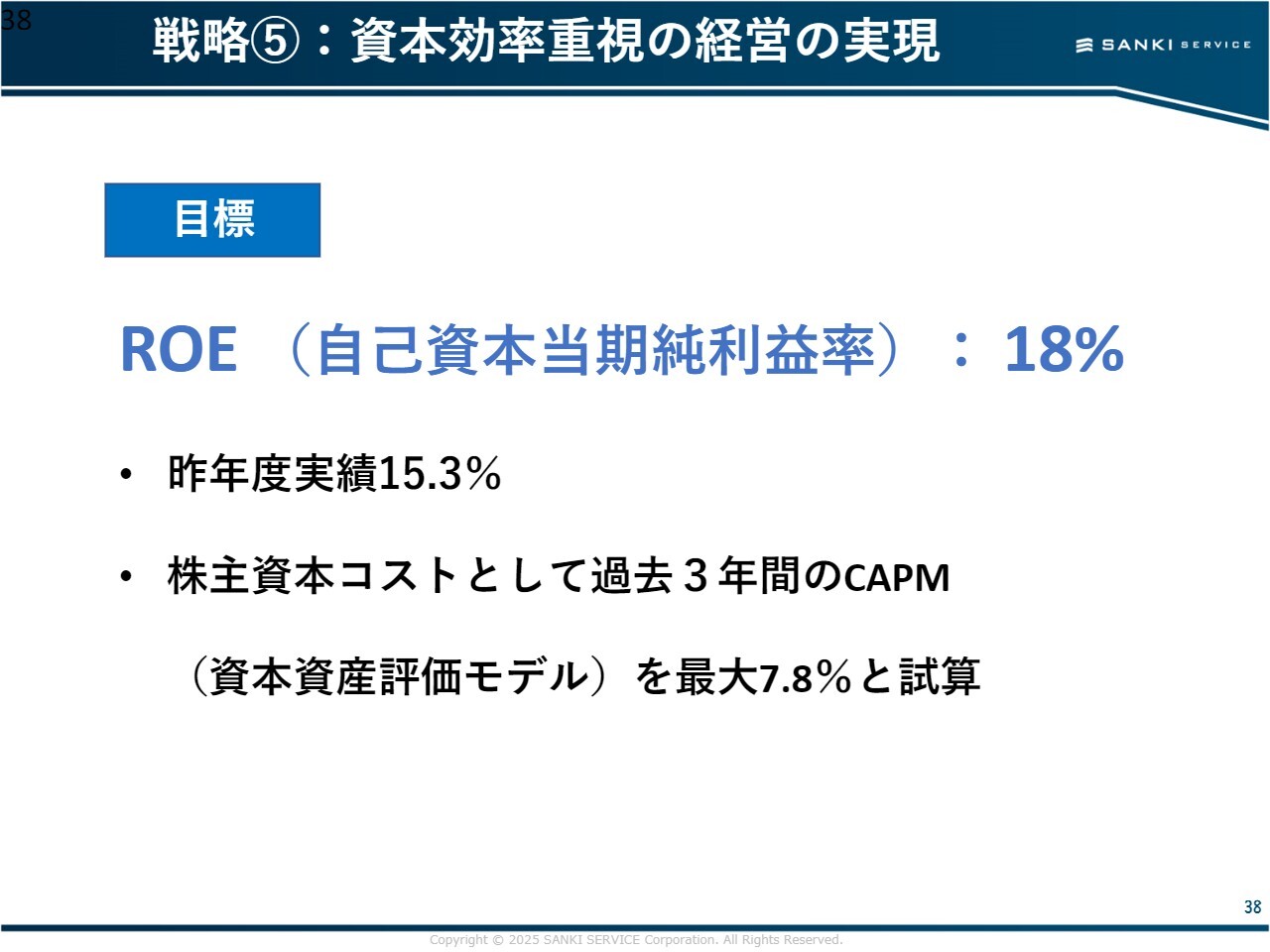 昨年度のROEは15.3パーセントですが、今後、安定的に15パーセント以上を確保できるよう努めます。