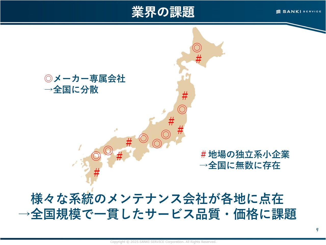 北越:このメンテナンス業界には、ある特徴があります。それは、「地域に根ざした規模の小さい企業が、日本全国に無数に存在している」ということです。