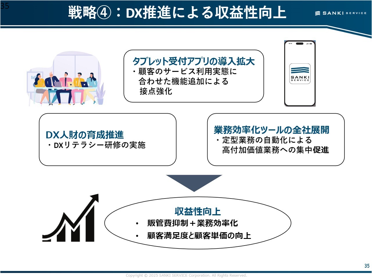 以上の施策を通じて、業務効率化を進めることで、事業成長に伴う販管費の増加を抑制しつつ、顧客満足度を向上させ、収益性の強化を目指します。