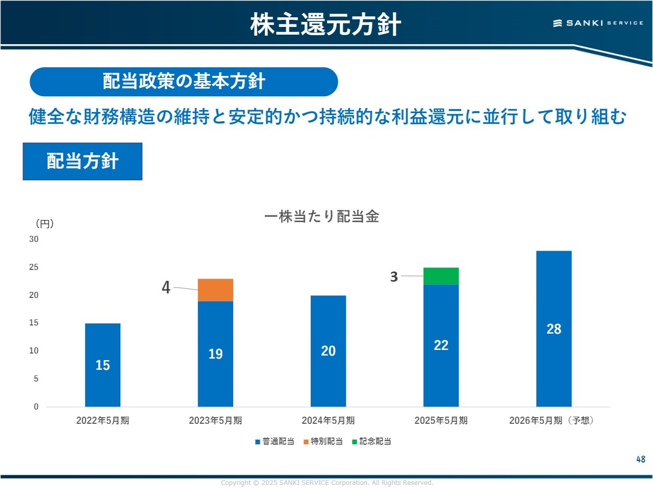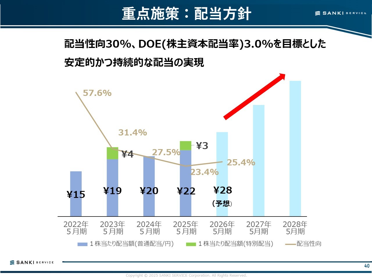 北越:先ほどご説明したとおり、配当方針としては安定的かつ持続的な利益還元を目指しています。2026年5月期は、普通配当額を1株当たり28円にすることを目標としています。
