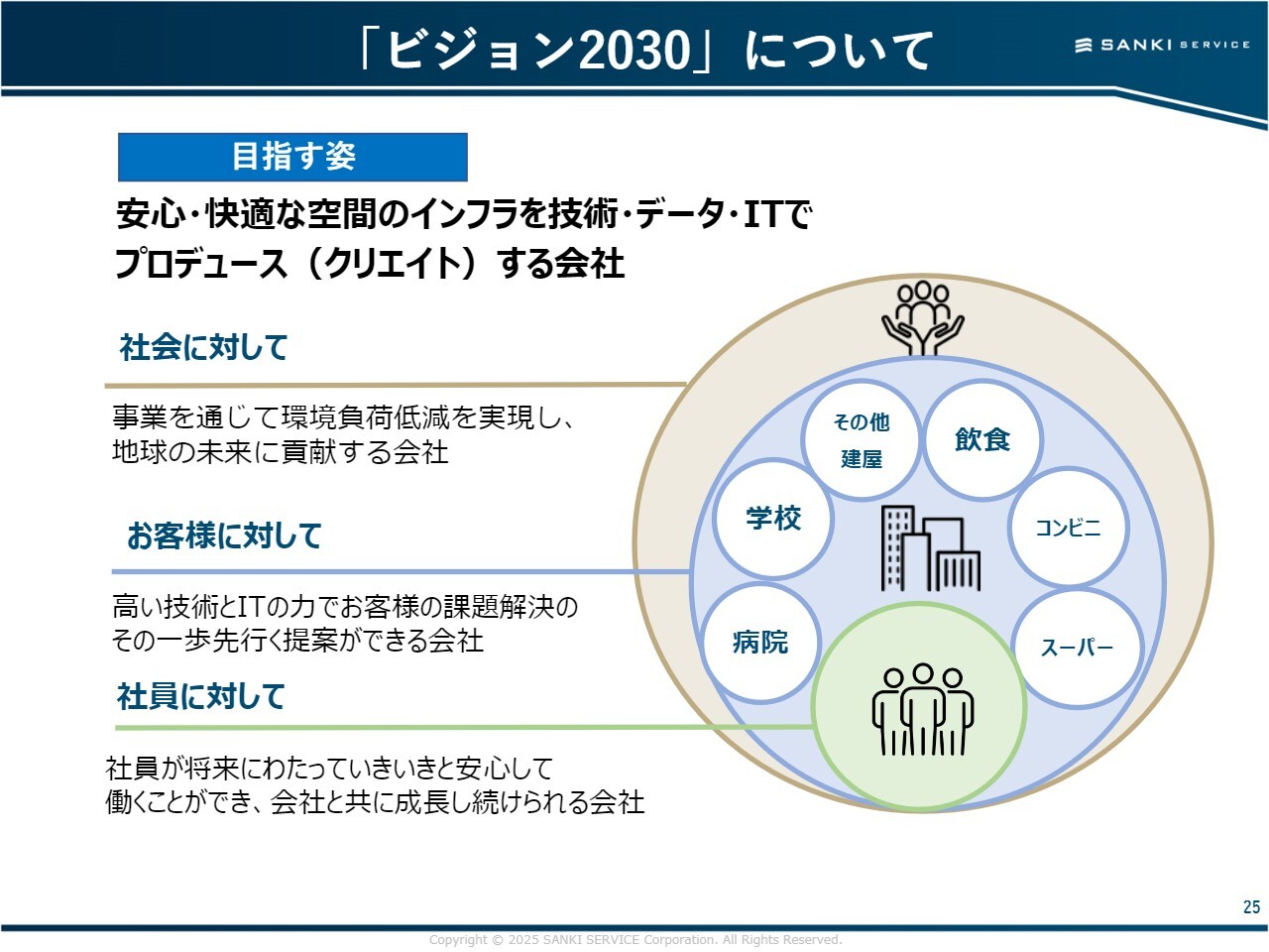 本計画の策定にあたり、当社が2030年に目指す姿として、「安心・快適な空間のインフラを技術・データ・ITでプロデュース(クリエイト)する会社」を掲げました。