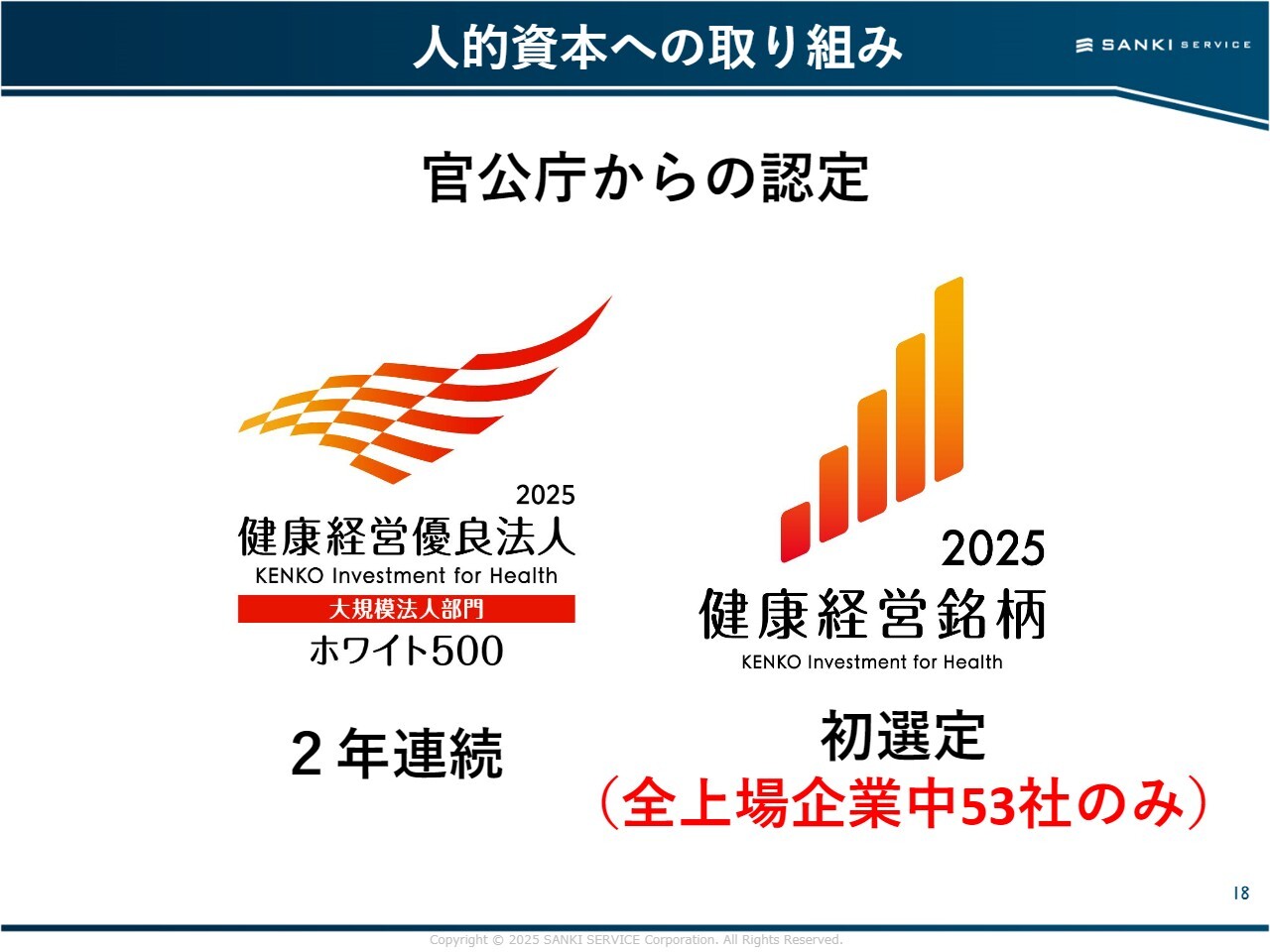 加えて本年は、経済産業省と東京証券取引所が共同で実施する「健康経営銘柄」にも初めて選定されました。これからも、すべての人々にとって魅力的な環境の創造に全力で取り組んでいきます。