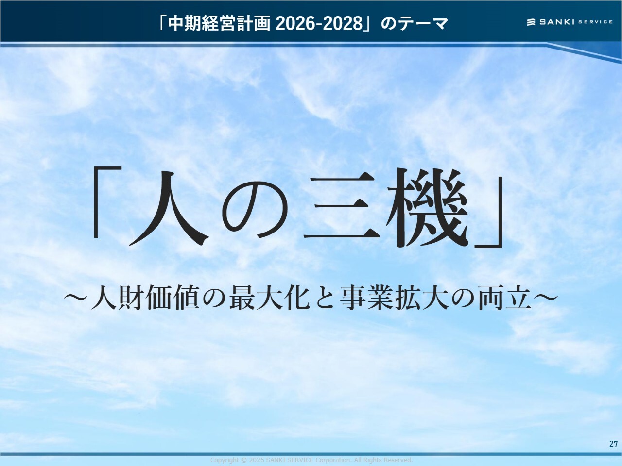 【QAあり】三機サービス、新中計「人の三機」3ヶ年で売上高成長約1.6倍目指す 初年度1Qは堅調推移