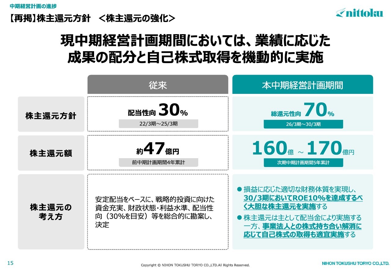 なお、自己株式取得を加えた株主還元については、この後の中期経営計画の進捗の中で遠田よりご説明します。