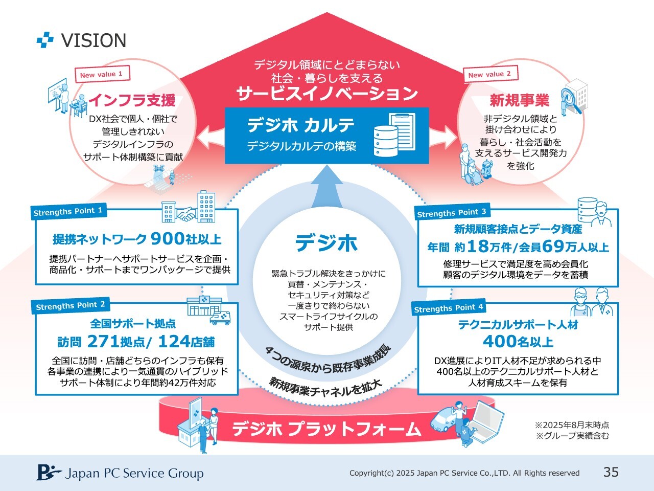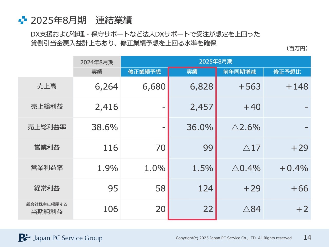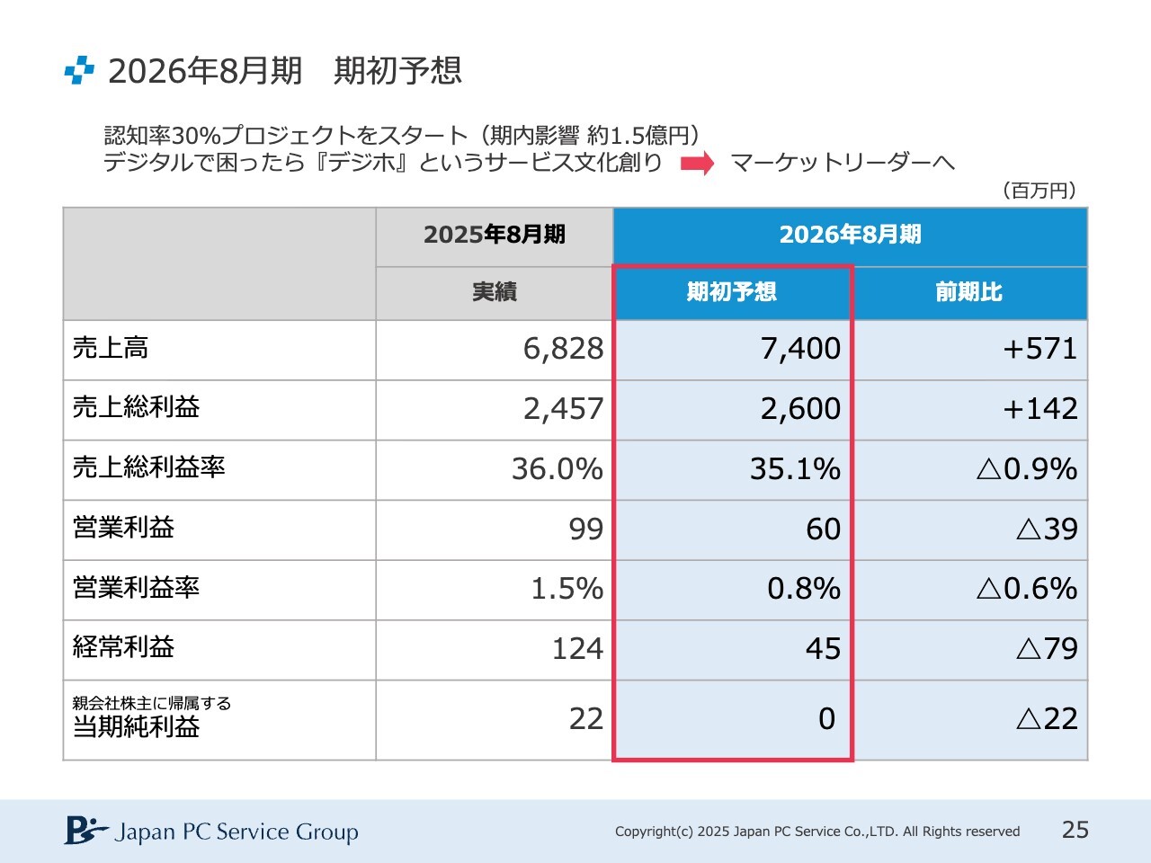 家喜信行氏(以下、家喜):日本PCサービス代表取締役社長兼グループCEOの家喜です。よろしくお願いします。金曜日の夜にご視聴いただき、ありがとうございます。それでは、2025年8月期の決算についてご説明します。