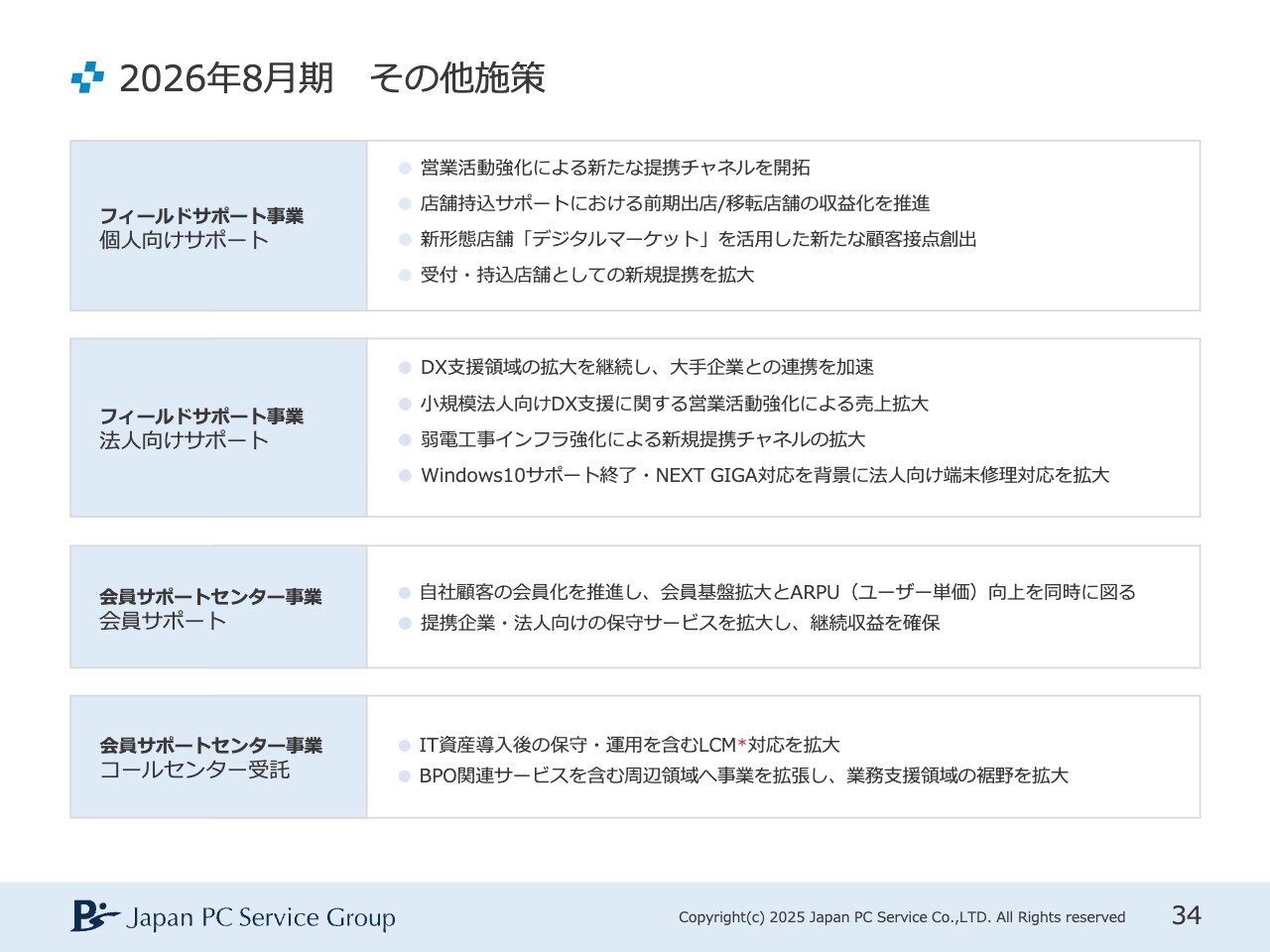 2026年8月期 その他施策