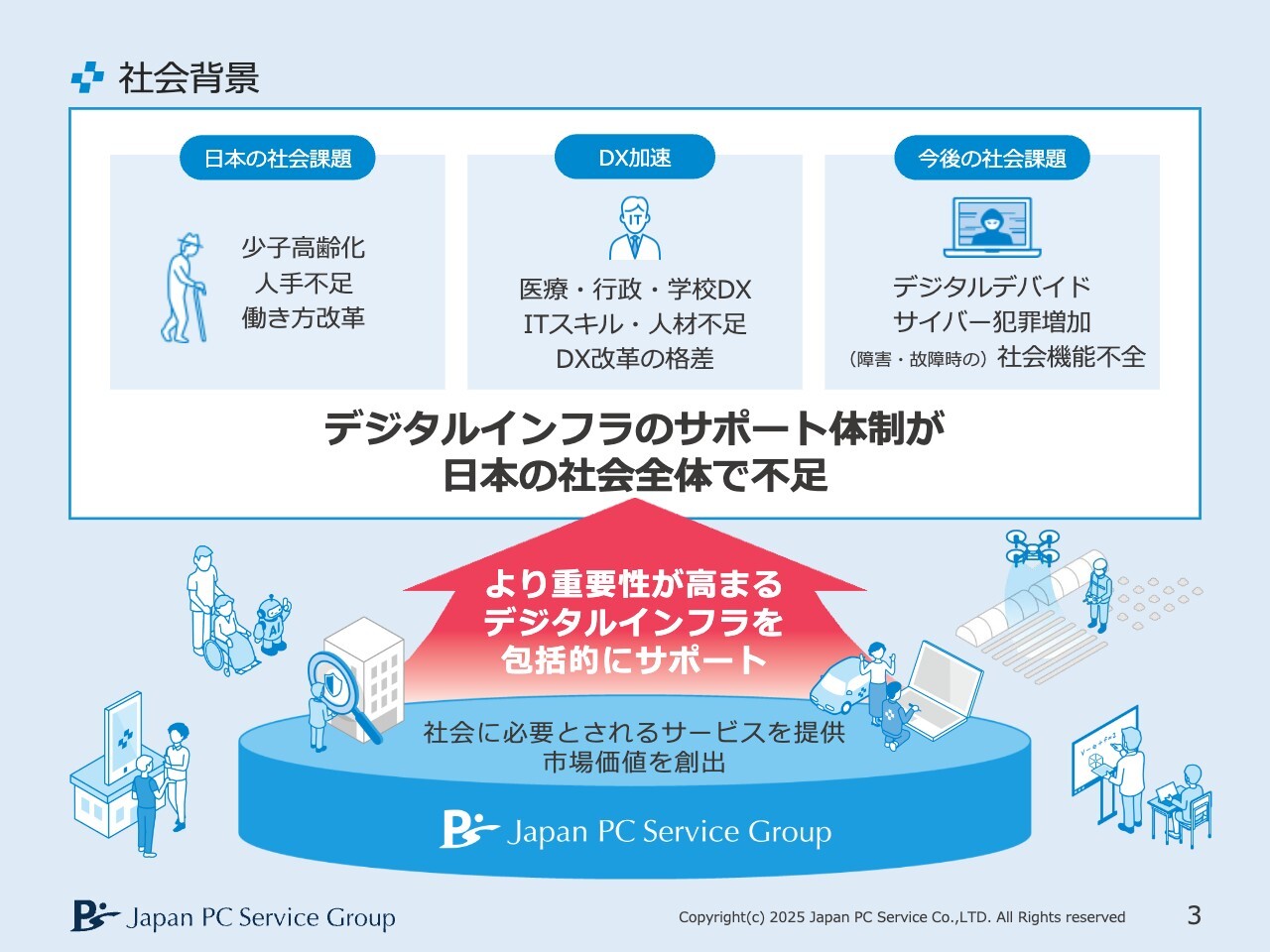 また、株主還元とは少し異なりますが、株主優待を行っています。社会に欠かせないものとして、「パソコンで困った」「ネットが使えない」「スマートフォンが壊れた」などに対するデジタルサービスやネットワークサービスはますます増加すると予測されます。