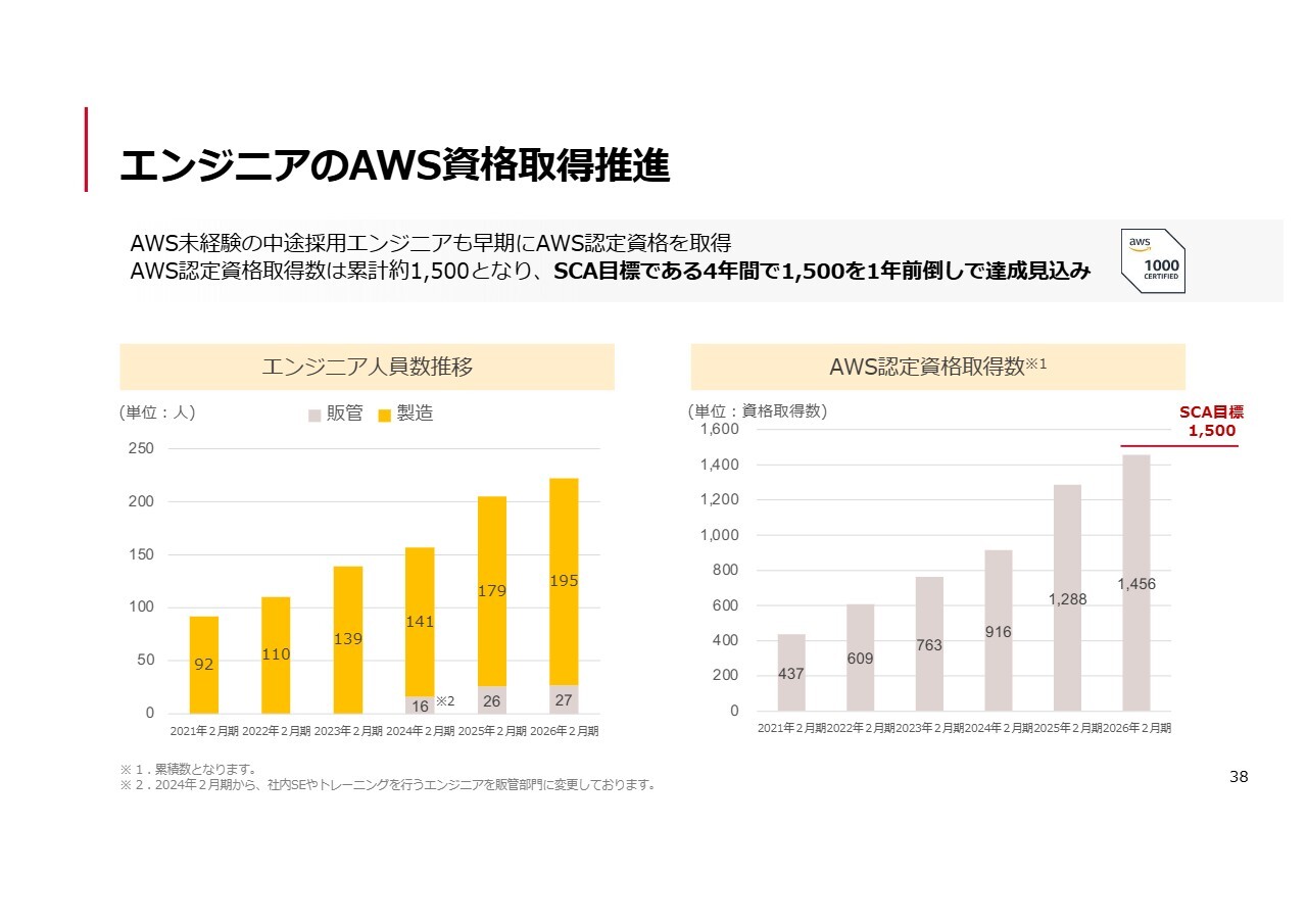 エンジニアのスキルアップも順調に進んでおり、AWS認定資格の取得数は目標である1,500件に対して、もう少しという状況まで達しています。