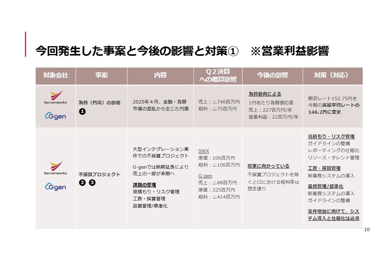 要因についてご説明します。第2四半期において、サーバーワークスおよびG-genの両社で非常に大きな不採算プロジェクトが発生しました。