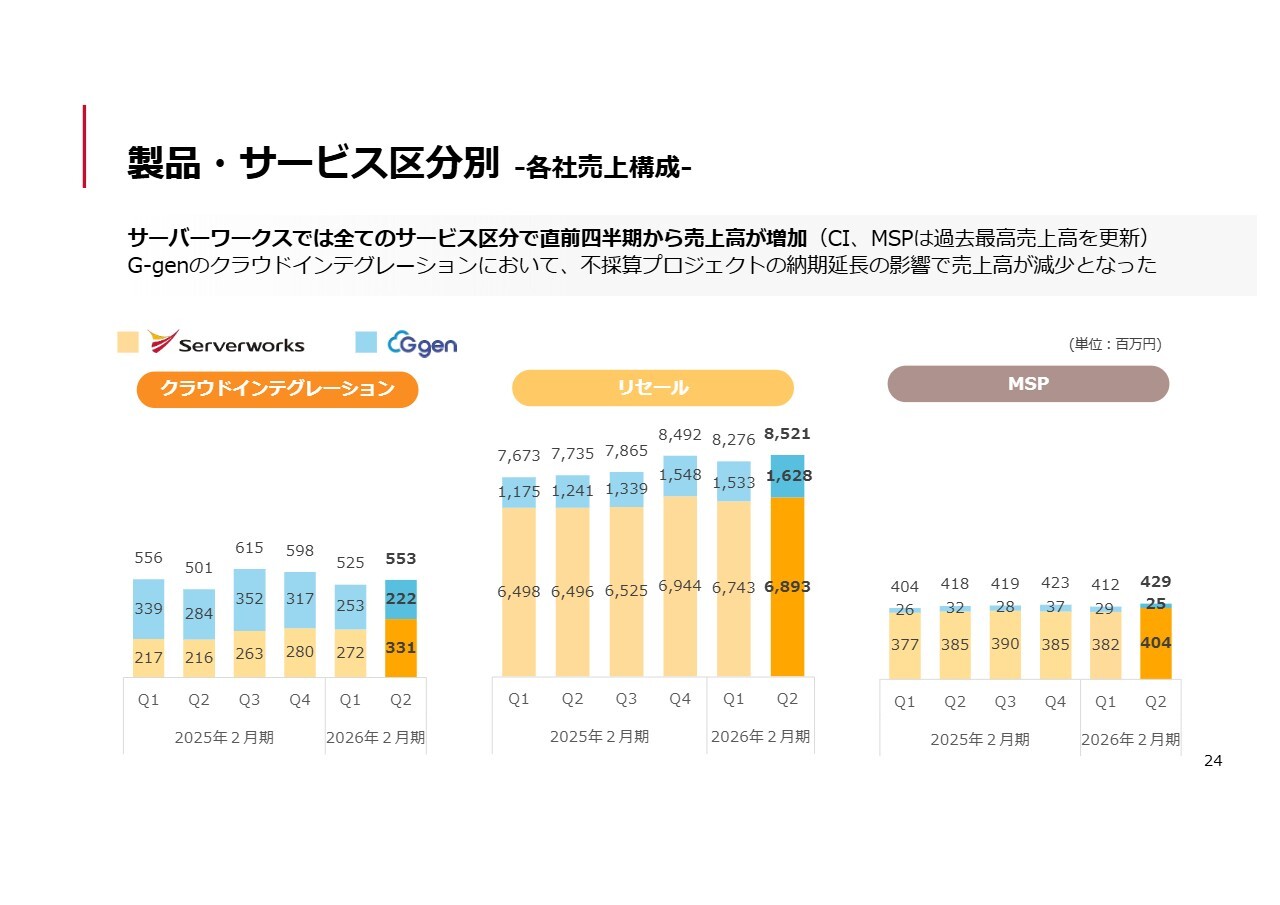 一方で、G-genでは非常に大きな赤字プロジェクトが発生し、その対応に多くのリソースを割いたため、やや低調な伸びとなっています。ただし、リセールについては順調に伸びている状況です。