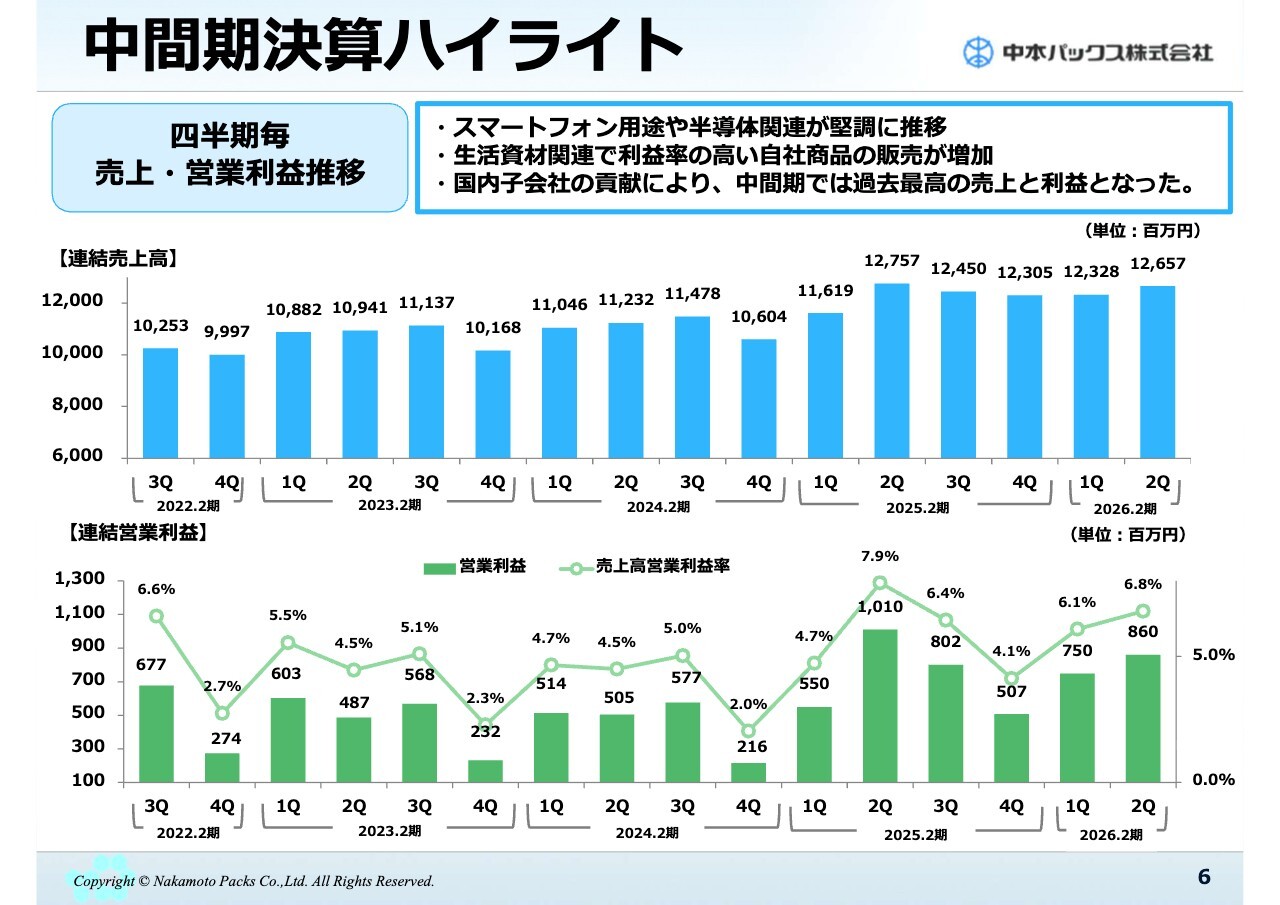先ほどお話ししたように、スマートフォン用途や半導体関連の需要が好調に推移したこと、生活資材の好調などにより、数年前から順調に売上高を伸ばし、昨年からは四半期で100億円を安定的に超える売上高となっています。