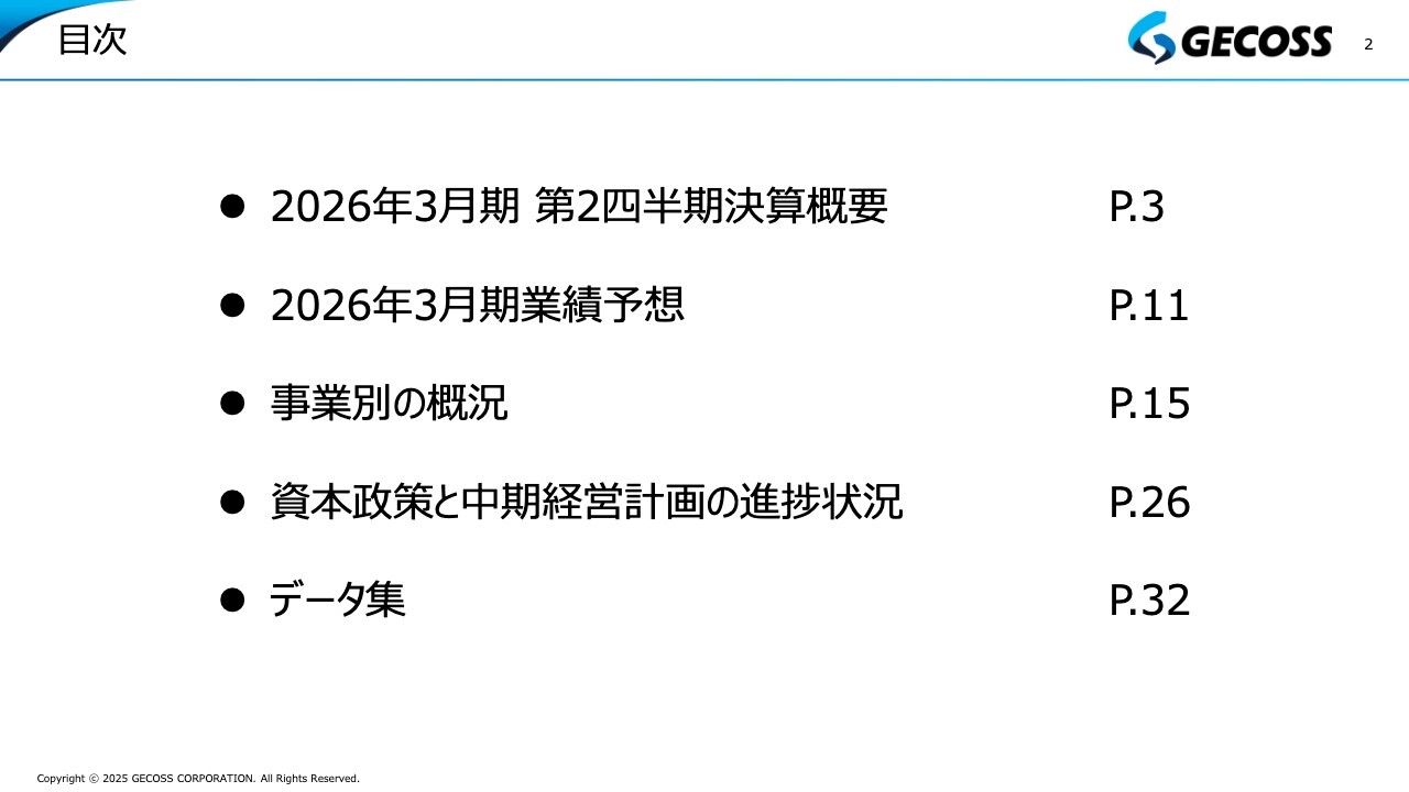 野房喜幸氏(以下、野房):みなさま、本日はご参加いただきありがとうございます。代表取締役社長の野房喜幸です。それでは、昨日発表しました2026年3月期第2四半期の決算についてご説明します。よろしくお願いします。