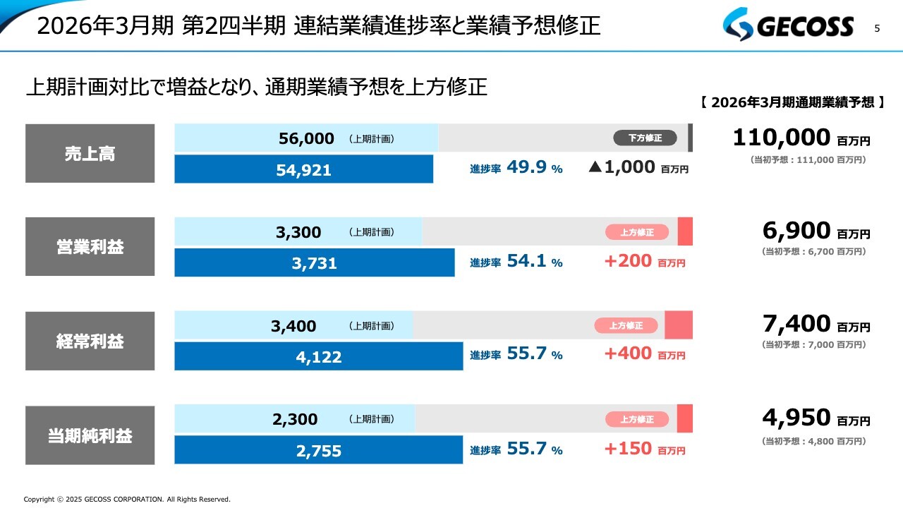 2026年3月期 第2四半期 連結業績進捗率と業績予想修正