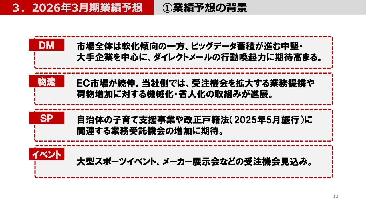 また、セールスプロモーション分野では、自治体の子育て支援事業や改正戸籍法に関する業務受託機会の増加が期待されます。