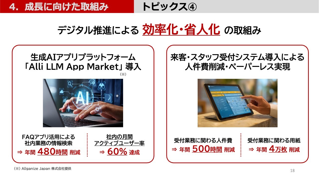また、2026年3月期においては、2025年8月に4億6,600万円の自己株式取得を実施しており、この後も成長投資の実施状況などを勘案しながら、取組みを検討していきます。