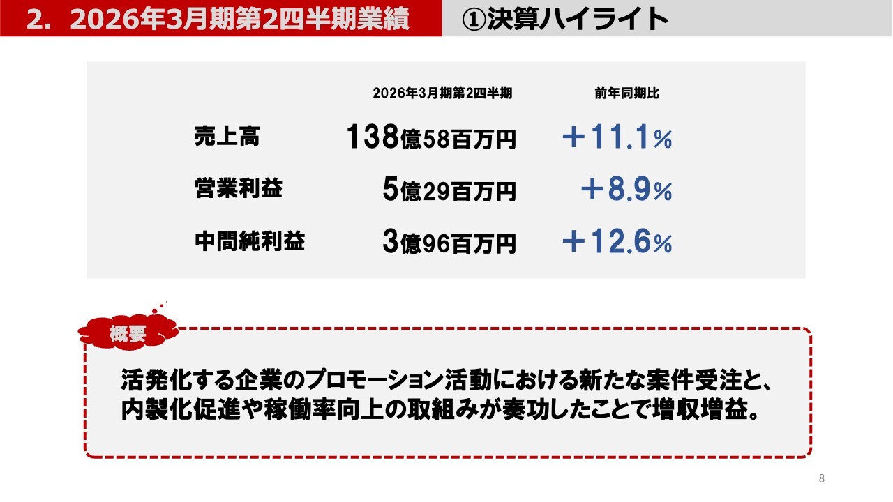 2.2026年3月期第2四半期業績/①決算ハイライト