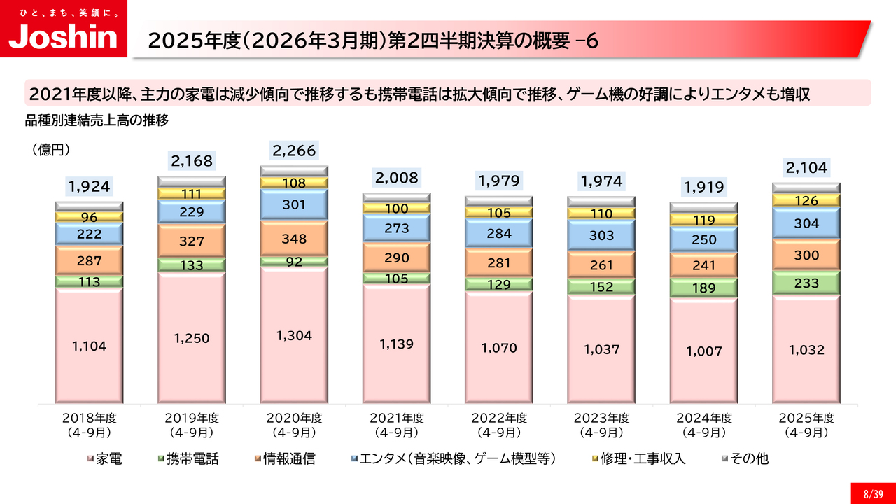 【QAあり】上新電機、上期連結売上高2,000億円台に復帰 阪神タイガースリーグ優勝セール効果で店頭・インターネット販売とも増収