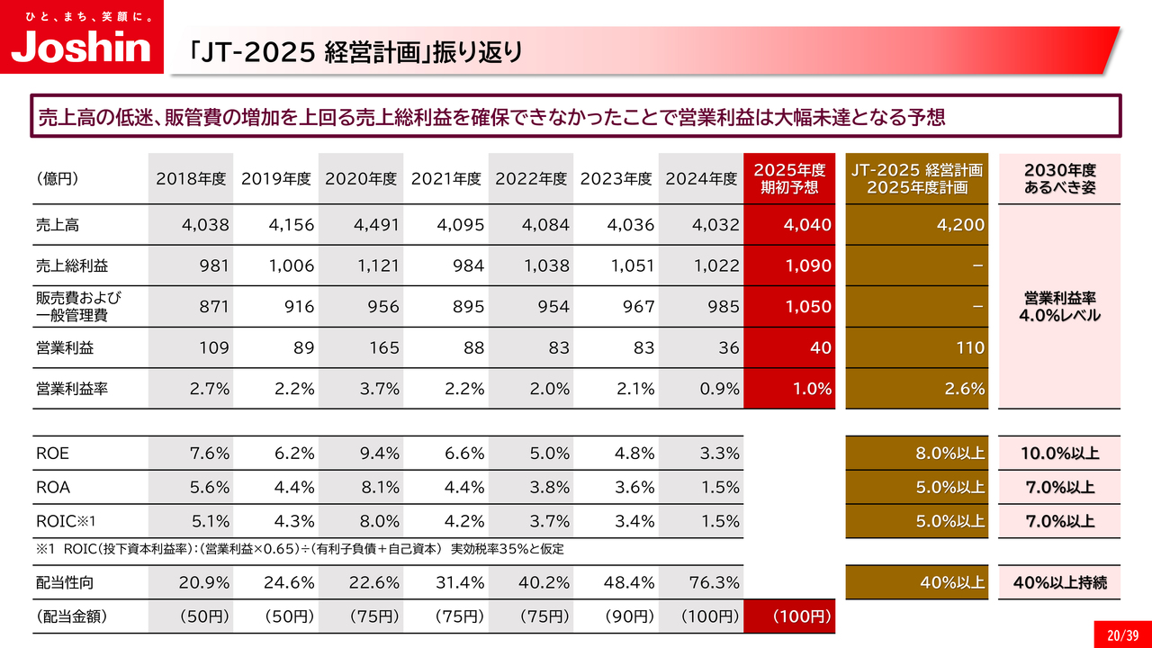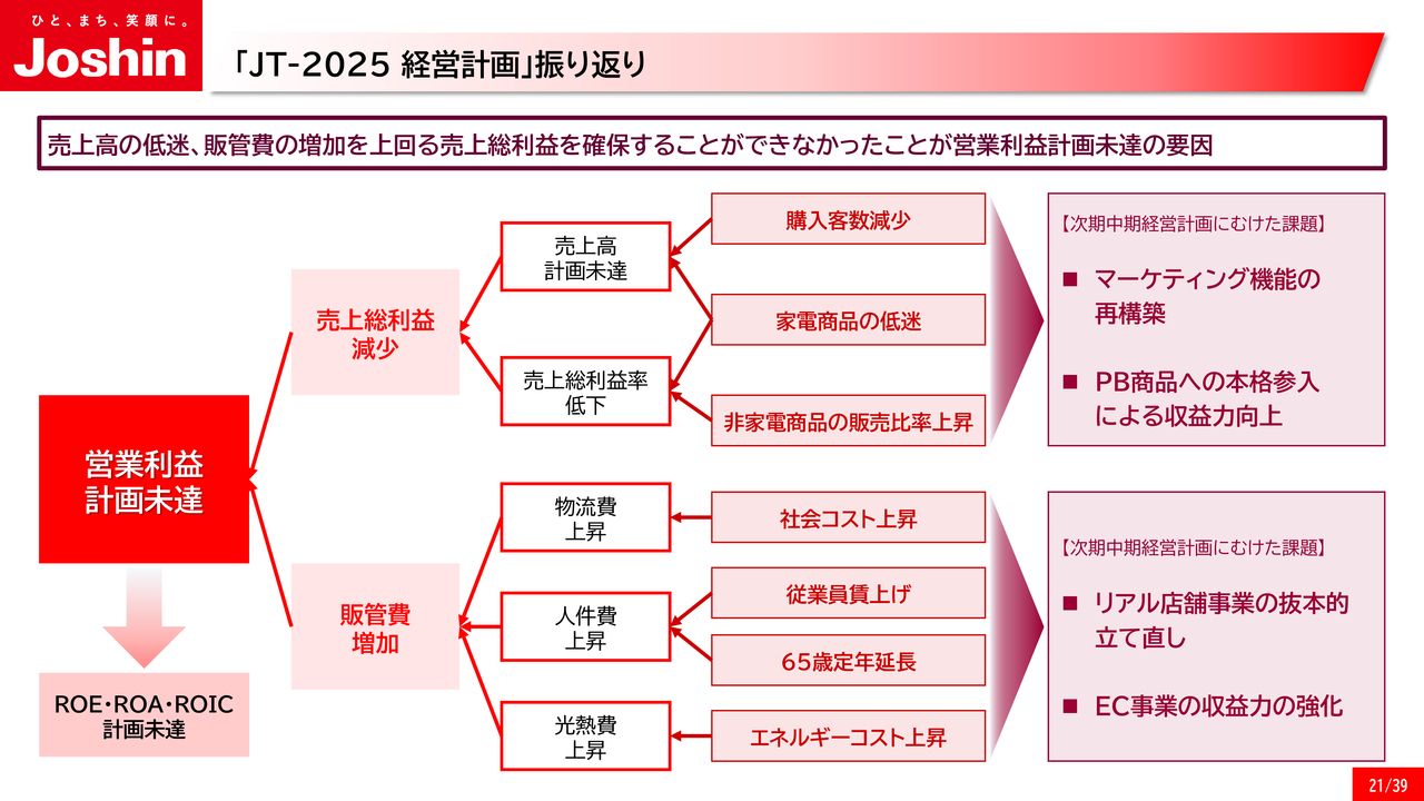 現中計での振り返りでもお示ししたとおり、当社グループの商品・サービスを購入されるお客さまの減少が、営業利益計画が未達に終わった最大の要因と認識しています。